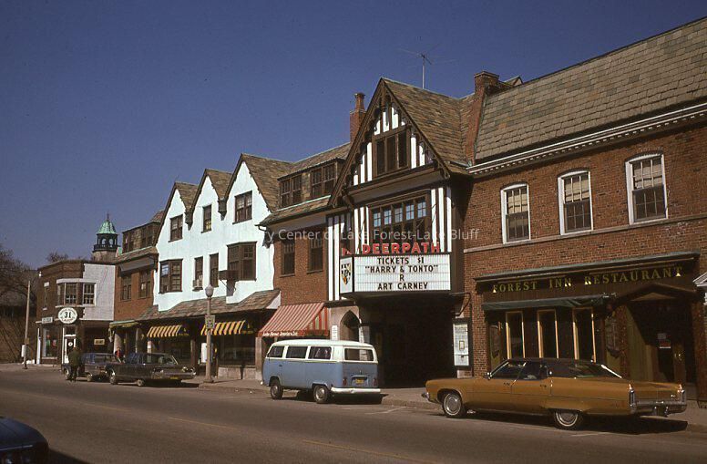 272 East Deerpath Deerpath Theatre movie showing was "Harry and Tonto" with Art Carney, rated R, movie price was $1.00, one of the best movies of 1974 Baskin-Robbins Ice Cream Real Estate Lake Forest Jewelers, Inc. Forest Inn April 1975