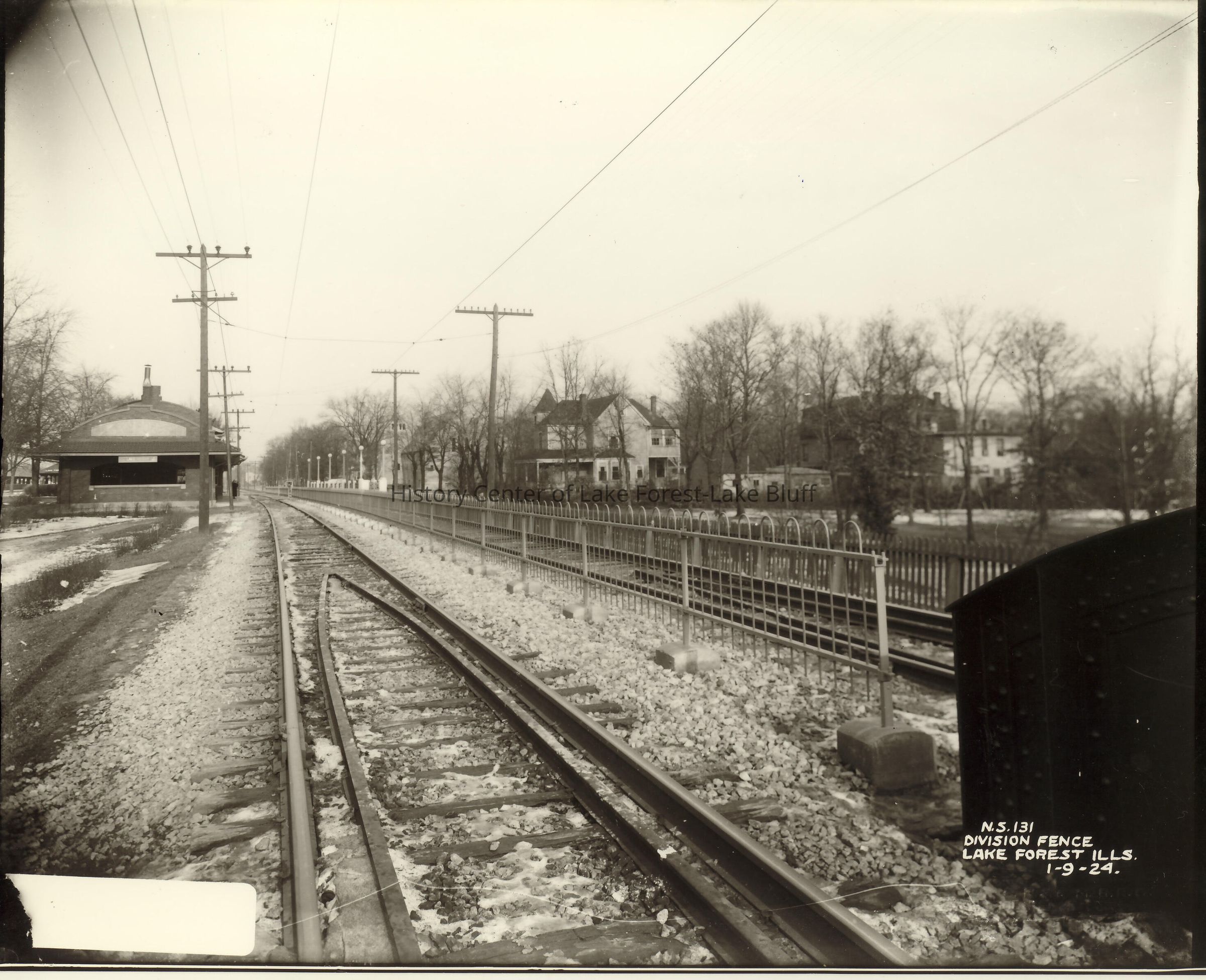 Lake Forest McKinley Road Rebuilding in 1923 re North Shore Line N.S. 131 division fence January 9, 1924 looking north