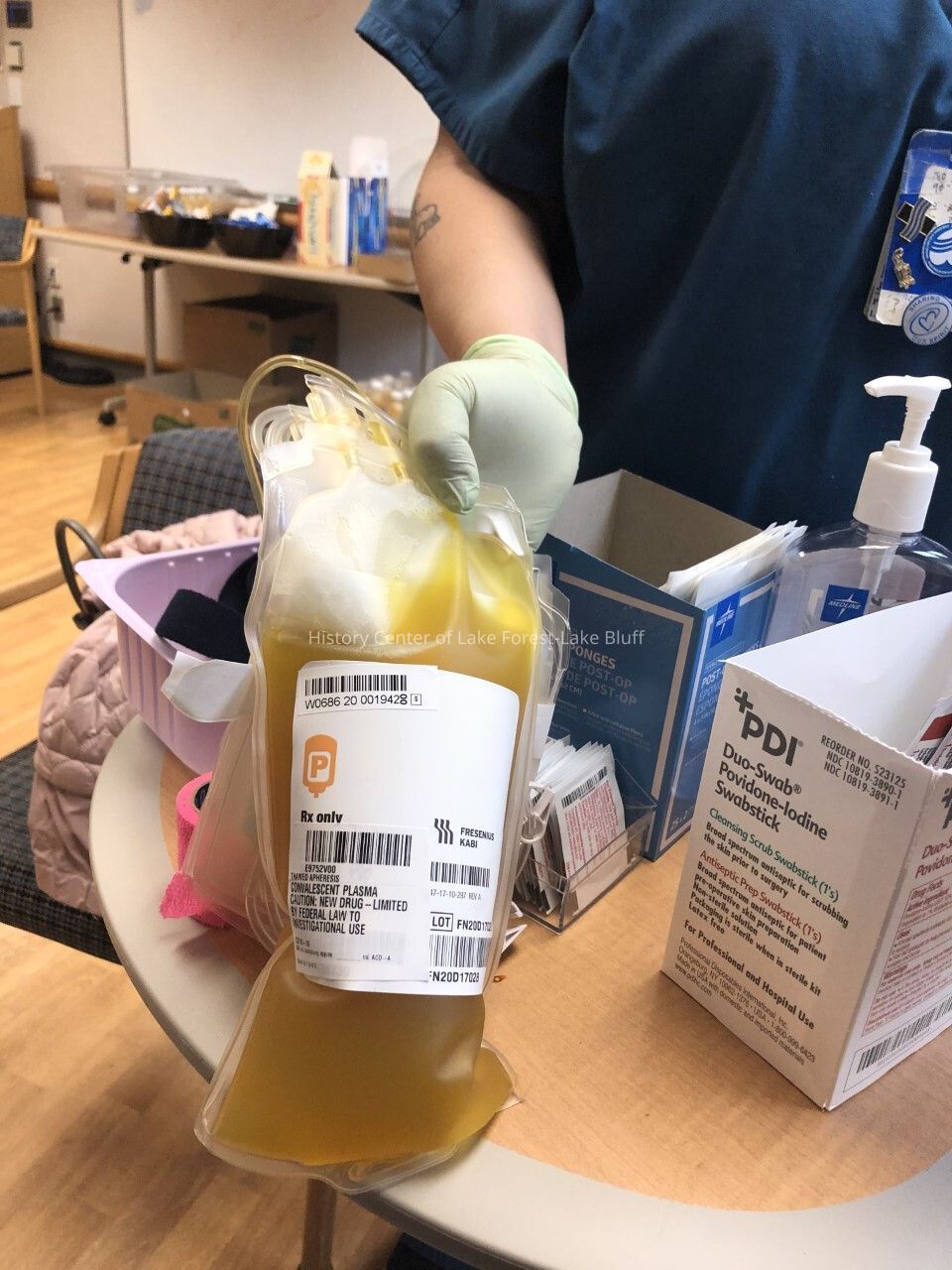 Katie Hale: People who have recovered from COVID-19 have antibodies in their plasma that can attack the virus. This bag will help three people.Photograph Details