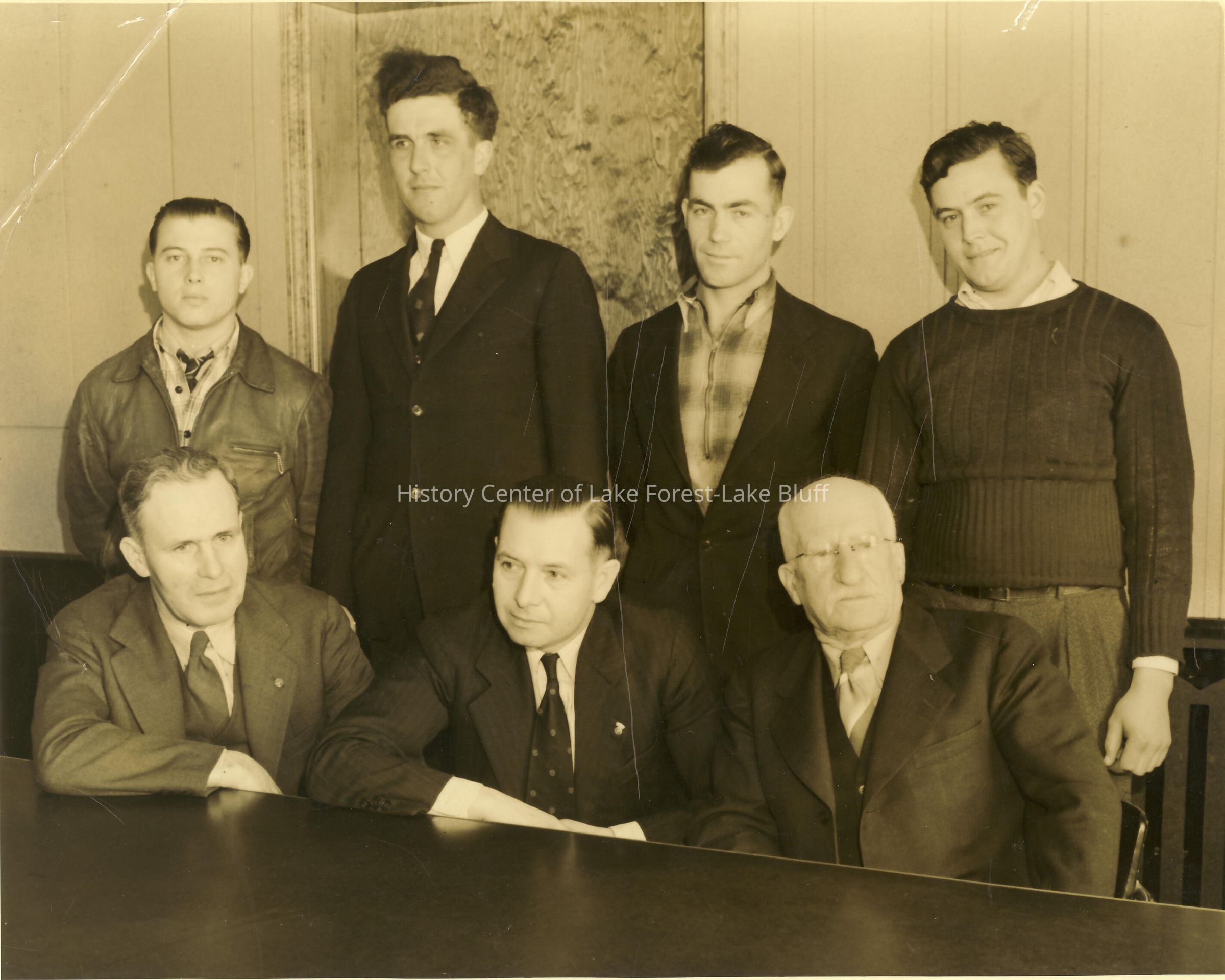 World War II agencies/volunteer efforts Taken February 8, 1940 First contingent from Lake County Draft Board #2 at Libertyville, two men are not present John Cusfeerson (Ford Dealer), Marc Neville, John Fitzgerald