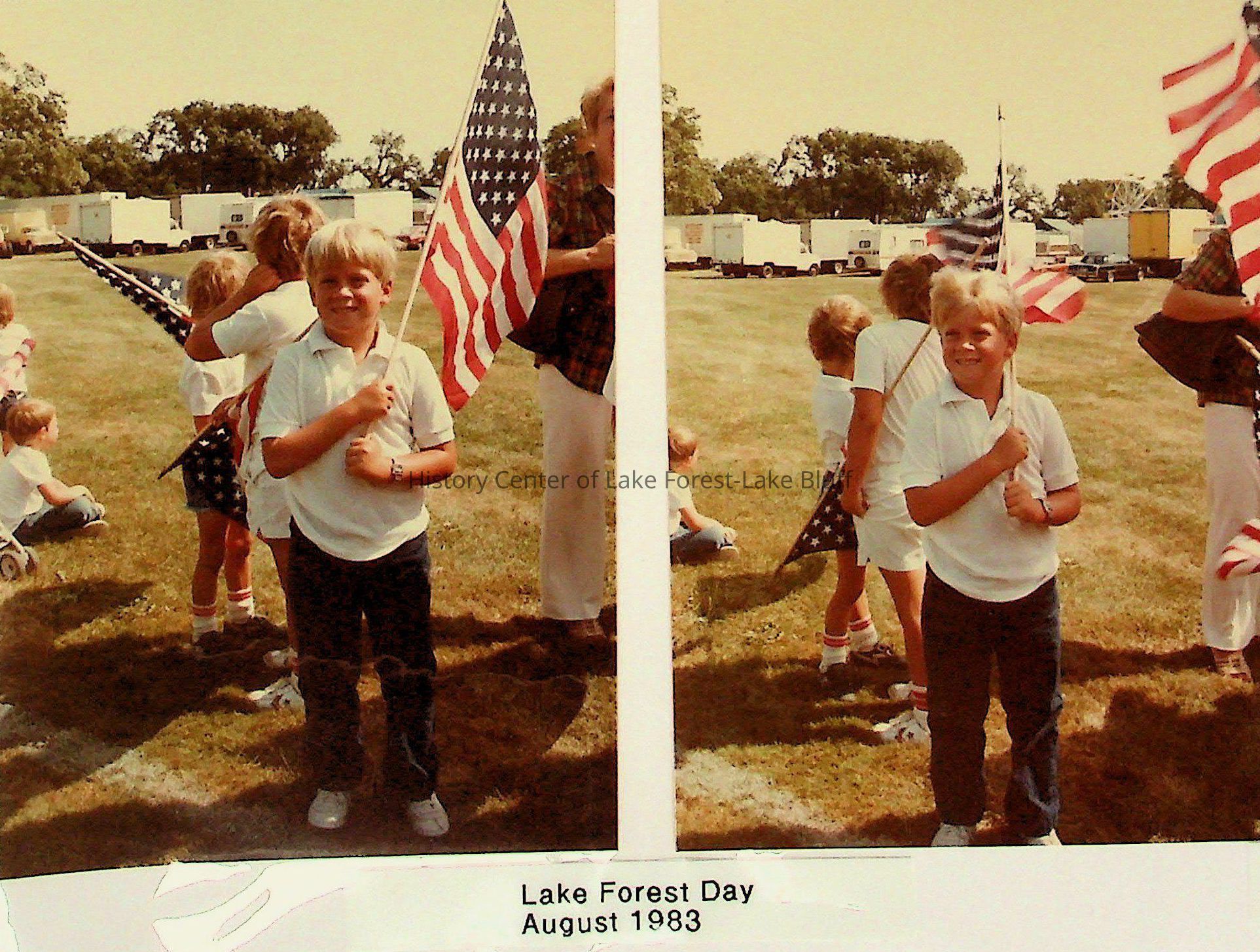 Children hold American flags at the Lake Forest Day celebration.