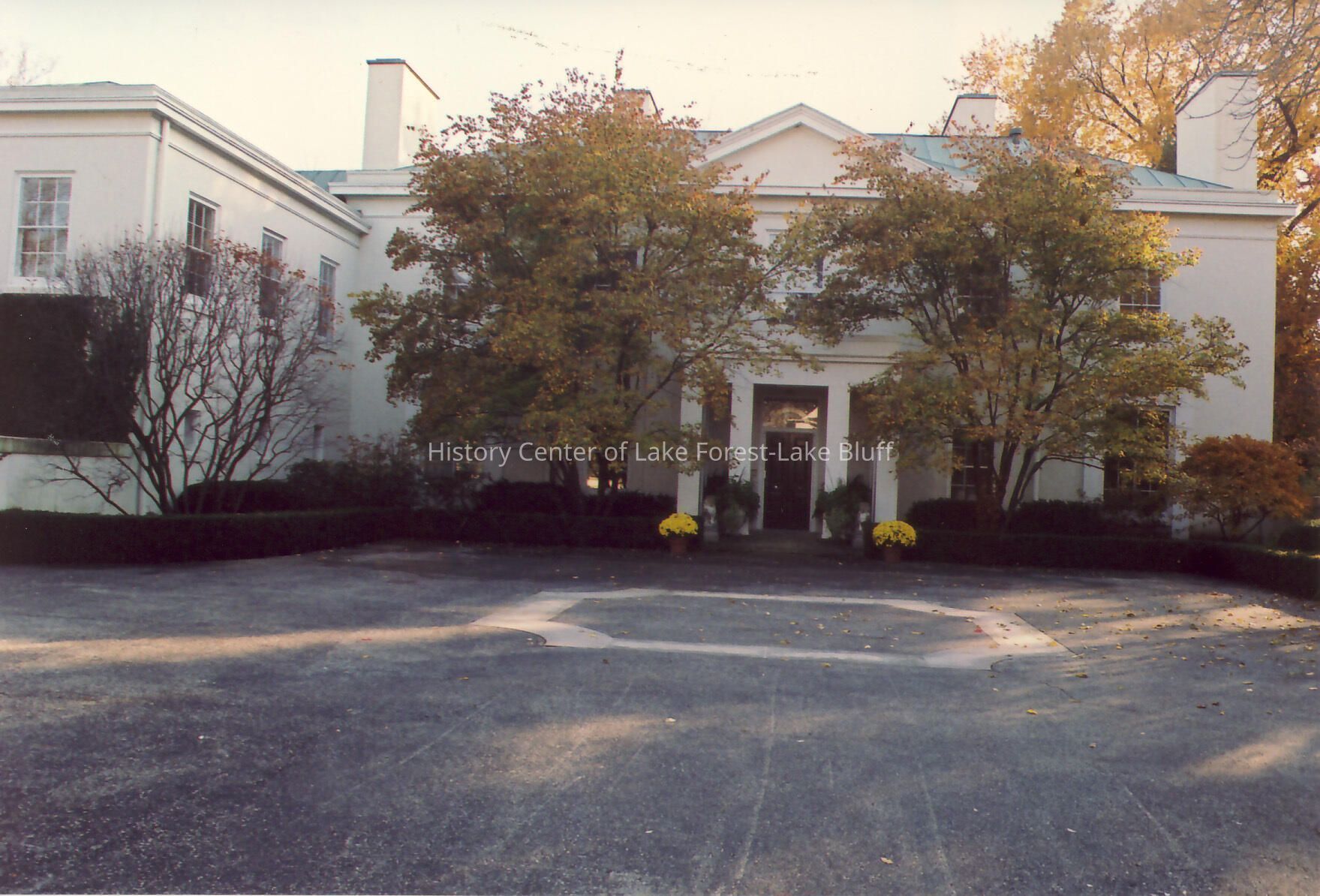 Exterior view from drive way of Walter Frazier home built for Duncan and Sarah Hodges in 1930. Located at 85 E. Westminster in Lake Forest, Illinois.