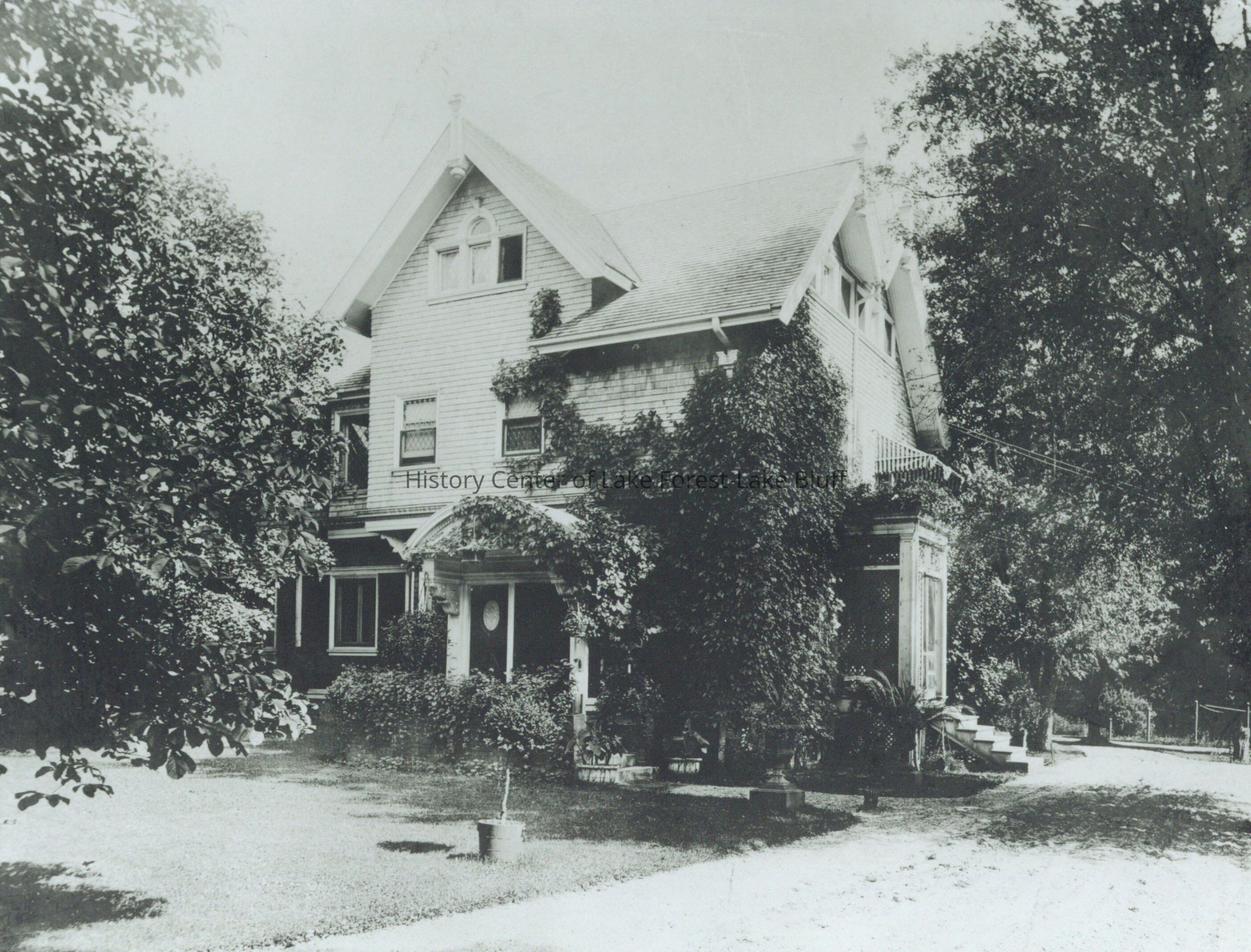 Black and white photograph of the original Durand house, 1898-1905 "Front of House"