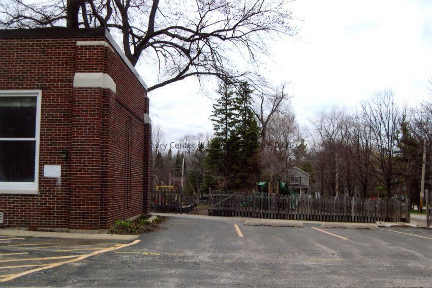 Photograph of East School in Lake Bluff prior to 2011 teardown. East side. Dated April 11, 2011. East School was located at Sheridan Place and Vincent Court. It first opened in 1895, with major renovations in 1923, 1946, 1950, and 1958.Made/Created