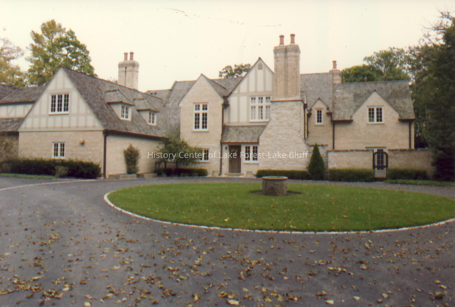 Exterior view from drive way of Walter Frazier home built for Edward and Elizabeth Welles in 1928. Located at 325 N. Ahwahnee Road in Lake Forest, Illinois.