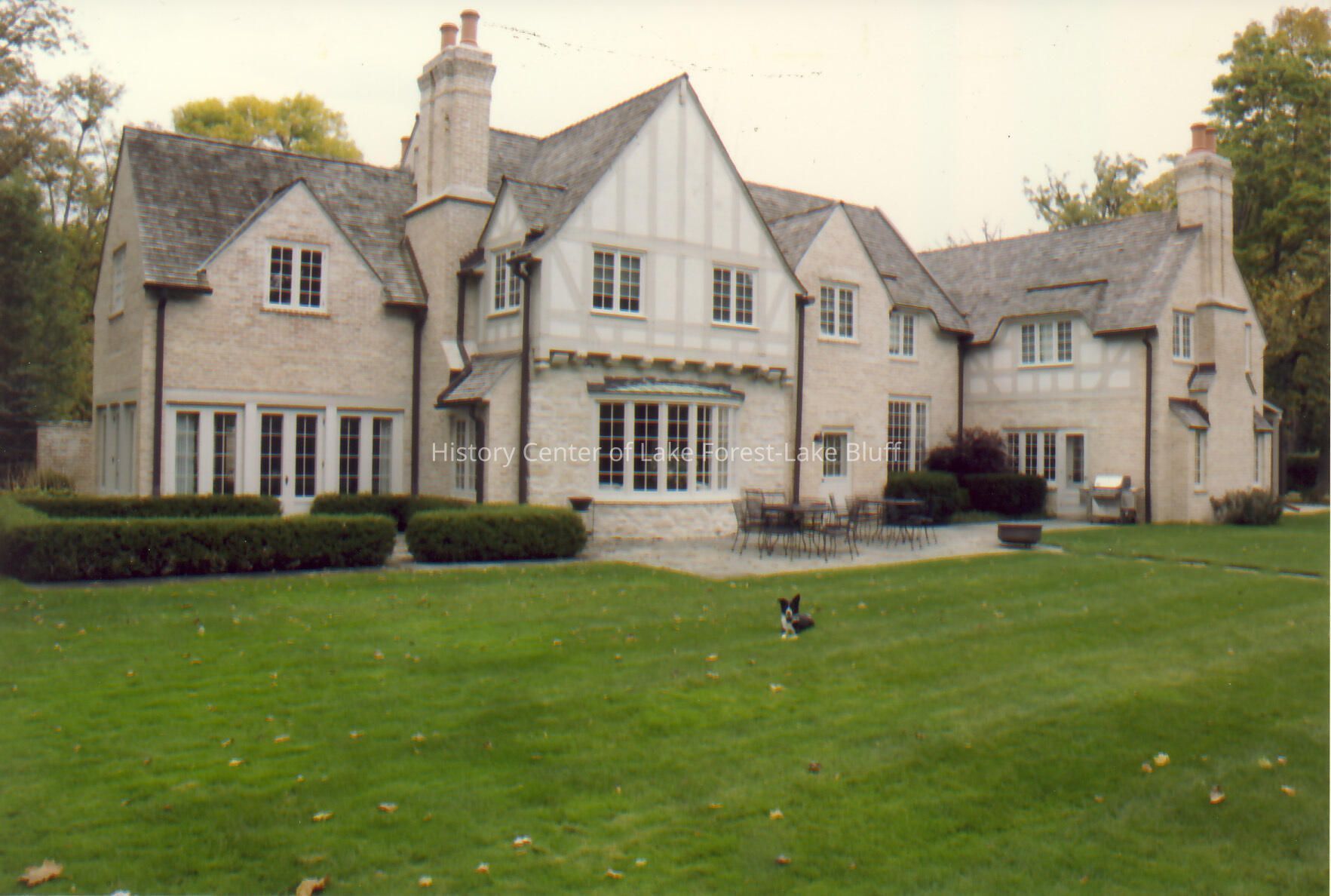 Rear exterior of Walter Frazier home built for Edward and Elizabeth Welles in 1928. Located at 325 N. Ahwahnee Road in Lake Forest, Illinois.