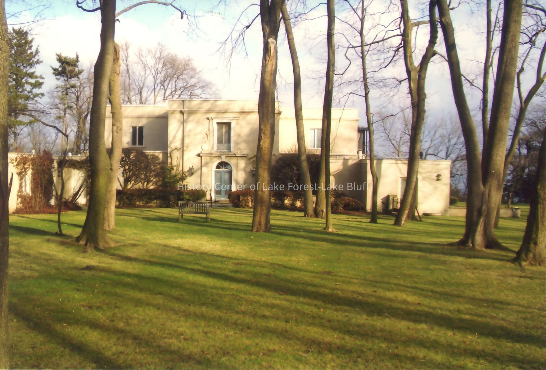 Exterior of Walter Frazier home built for Edward Byron Smith in 1965. Located at 1133 N. Lake Road in Lake Forest, Illinois.
