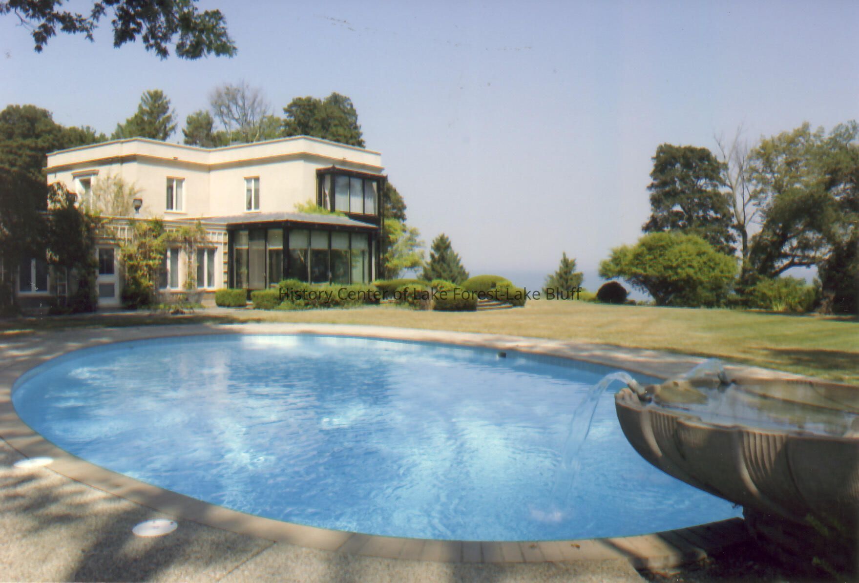 Pool and exterior view of Walter Frazier home built for Edward Byron Smith in 1965. Located at 1133 N. Lake Road in Lake Forest, Illinois.
