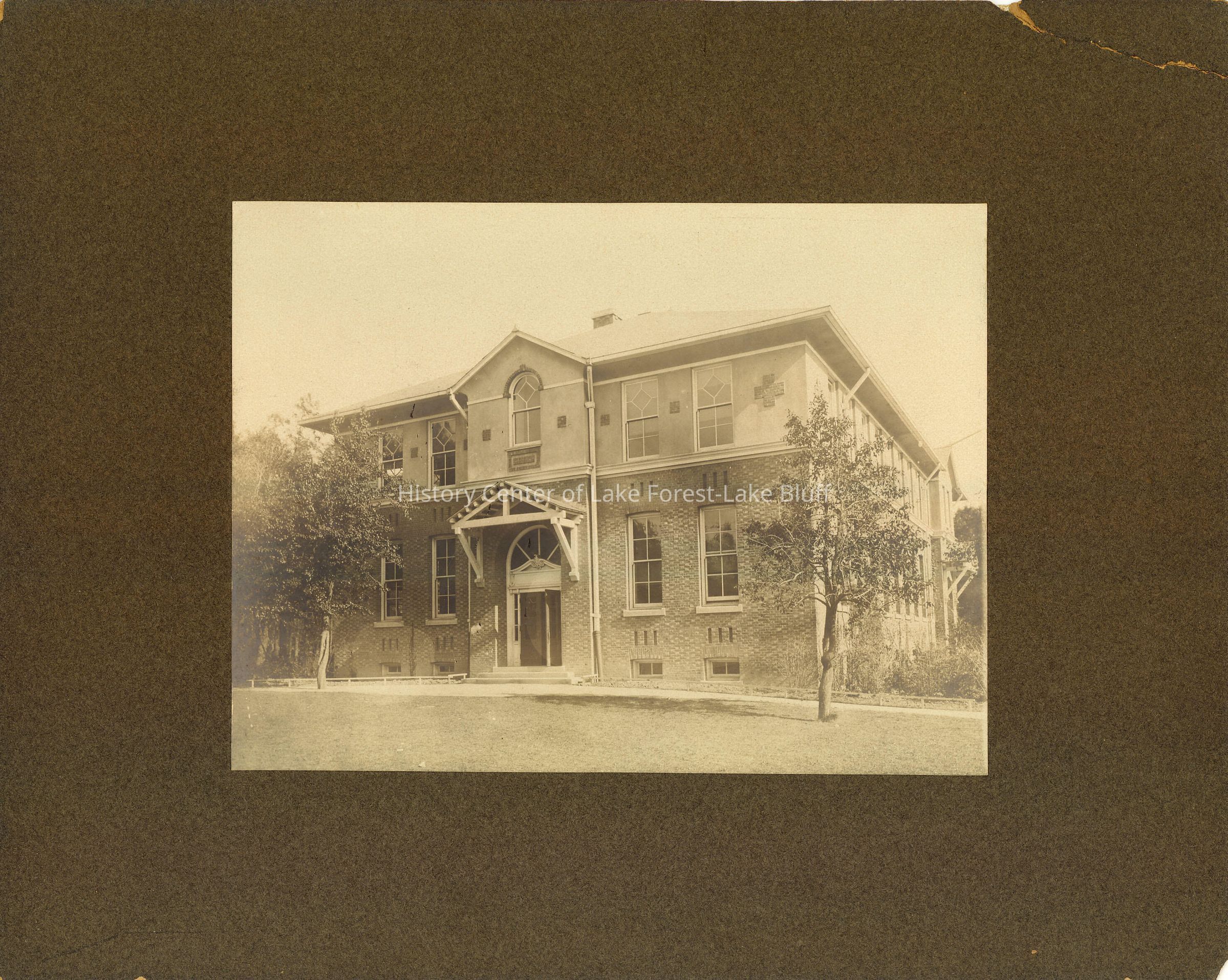Verso" Donated by Miss Eva E. Oke, 819 North Oakwood Avenue, Lake Forest. Originally called the Central School, in 1905 it was renamed the Gorton School in honor of the nineteenth mayor of Lake Forest, Edward F. Gorton (1895-1902). In 1972 Gorton School was converted to the Gorton Community Center.