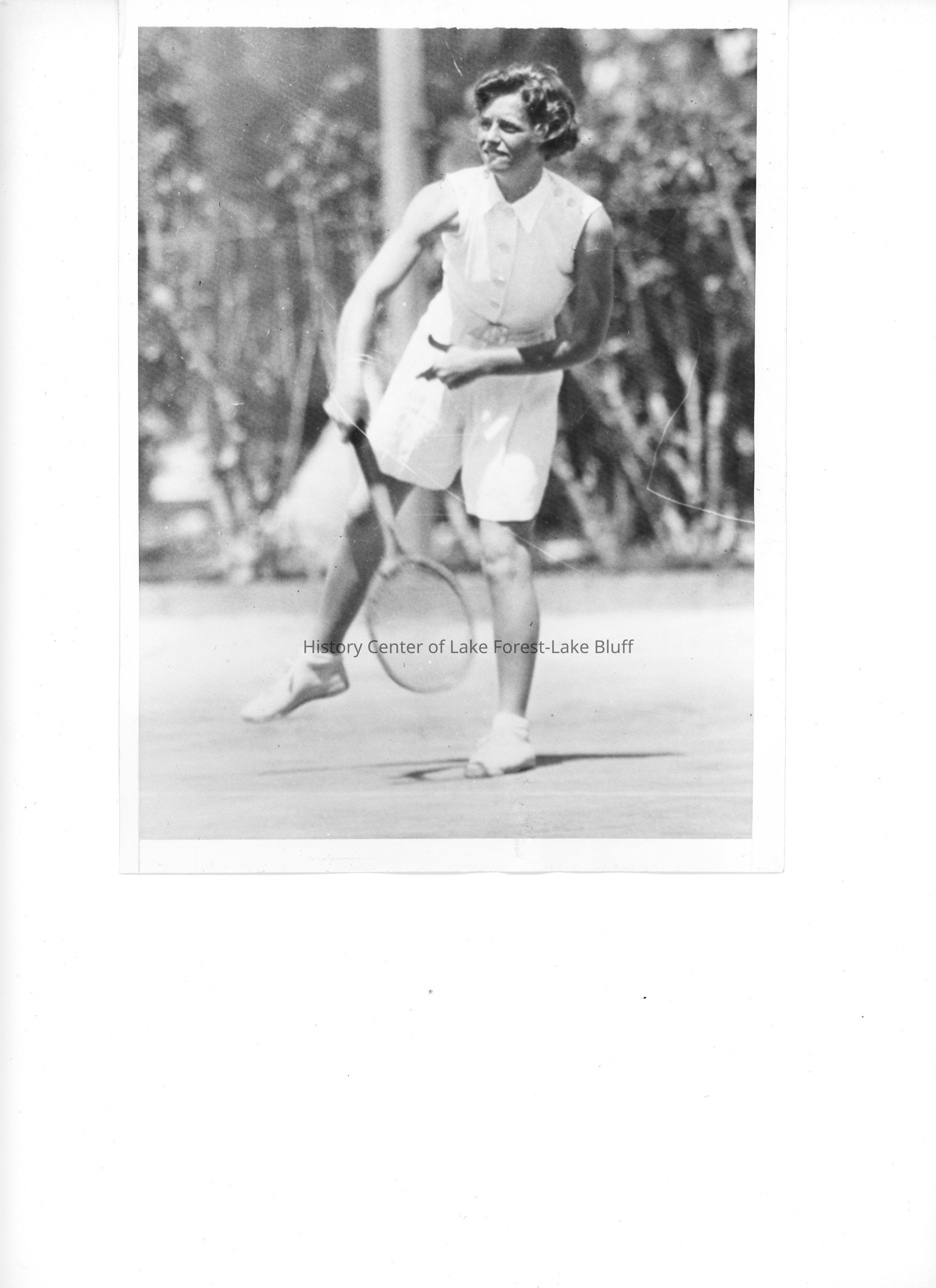 "Elizabeth Smith is seen here in 1935 playing tennis in the Bahamas. She was the oldest daughter of Anna and Harold Smith. Elizabeth married Gardner Brown whose father, William Brown, was born in Edinburgh, Scotland. The Smith and Brown families were members of the Illinois Saint Andrew Society."