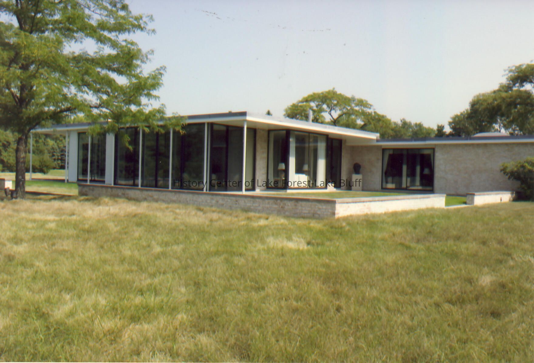 Exterior of Walter Frazier home built for Elliot and Ann Donnelley in 1955. Located at 1050 Melody Lane in Lake Forest, Illinois.