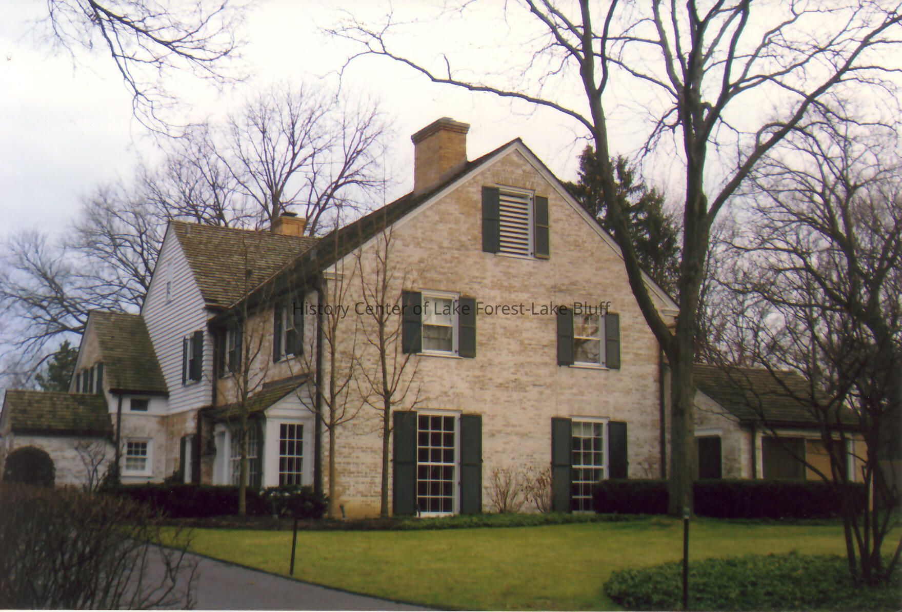 Exterior of Walter Frazier home built for Elliot and Ann Donnelley in 1934. Located at 131 E. Ridge Road in Lake Forest, Illinois.