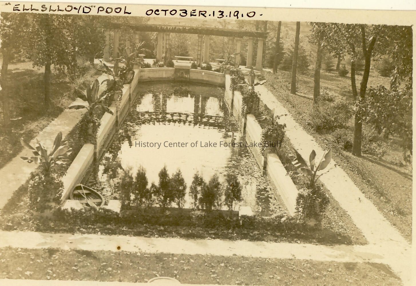 Louis E. Laflin Residence "Ellslloyd" 1007 Hawthorne Place postcard of Ellslloyd pool Robert Kohn, Architect 1907 October 13, 1910