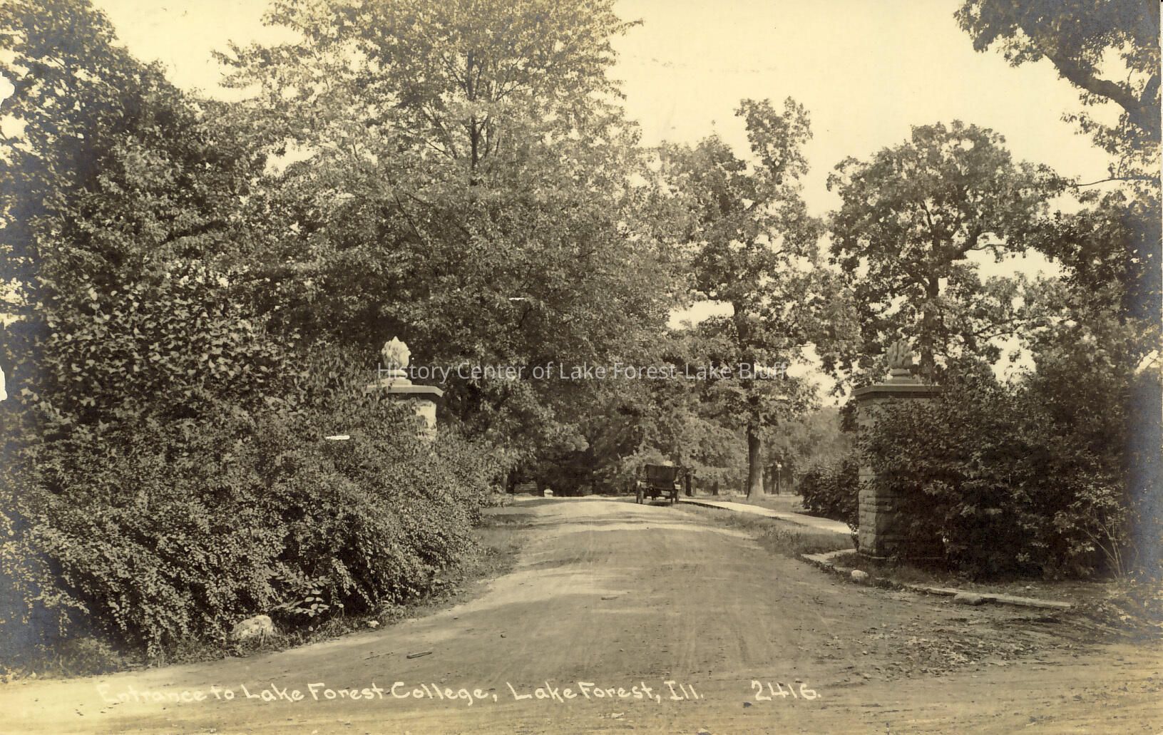 Postcard of entrance to Lake Forest College. Reverse is blank.