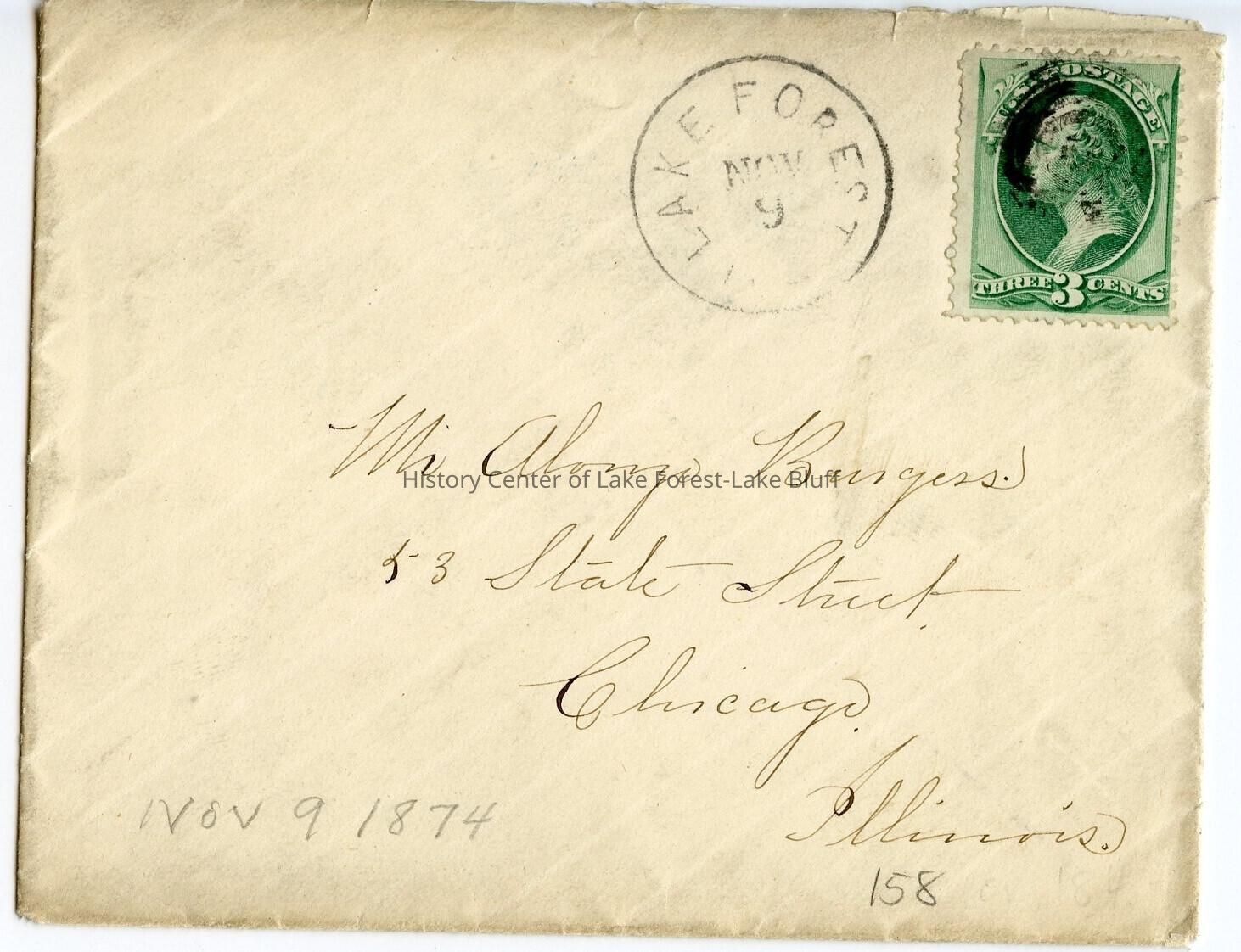envelope addressed to Mr. Alonzo Burgess, letter is record 2001.103.5.
