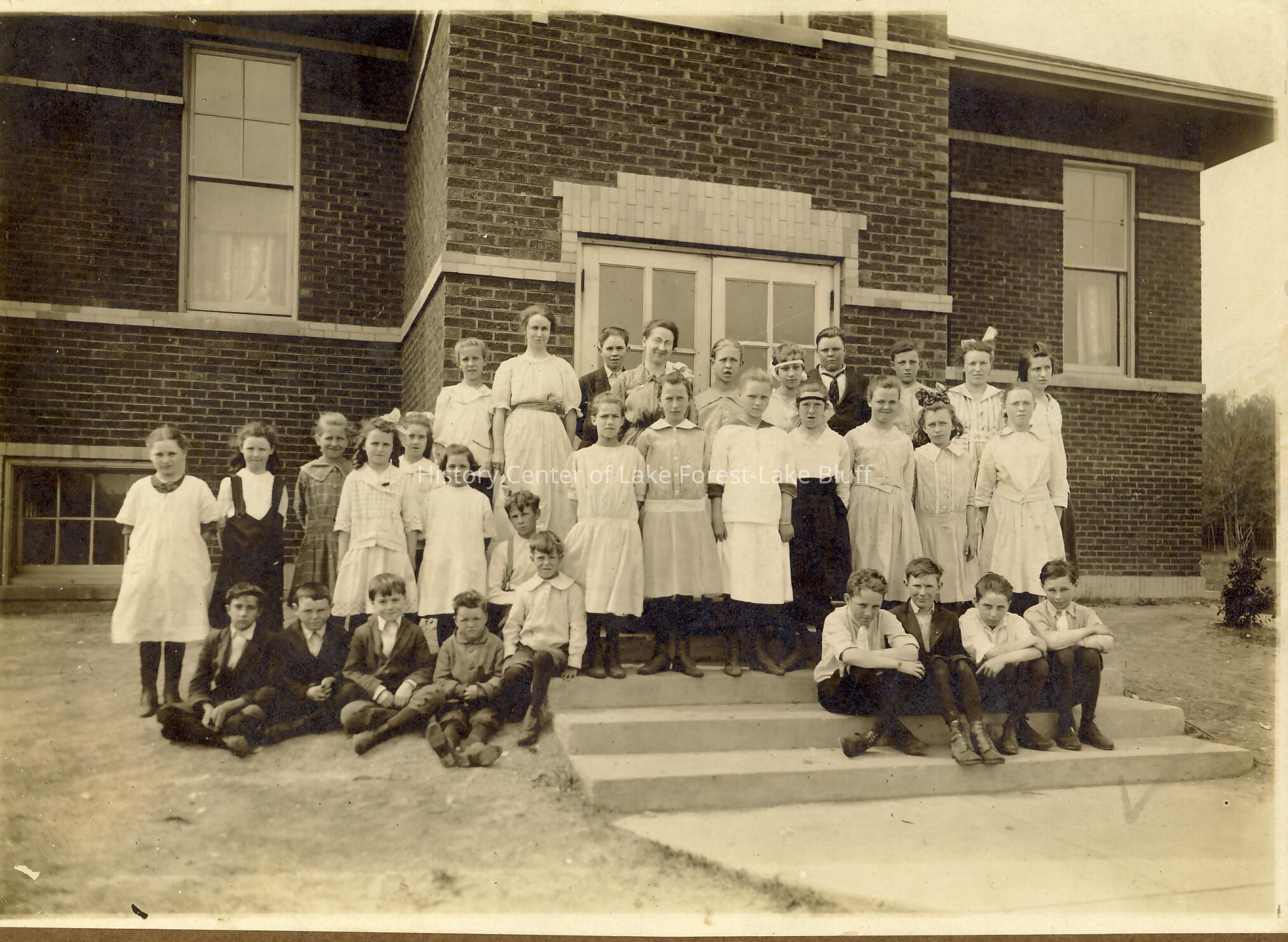1927 Everett School, picture of entire school on front steps. Everett Road West of Telegraph (now Waukegan) Road