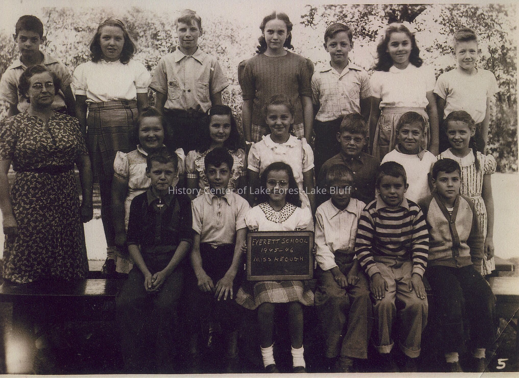 Class photograph of Everett School, 1945-1946. Teacher is Mary Keough.
