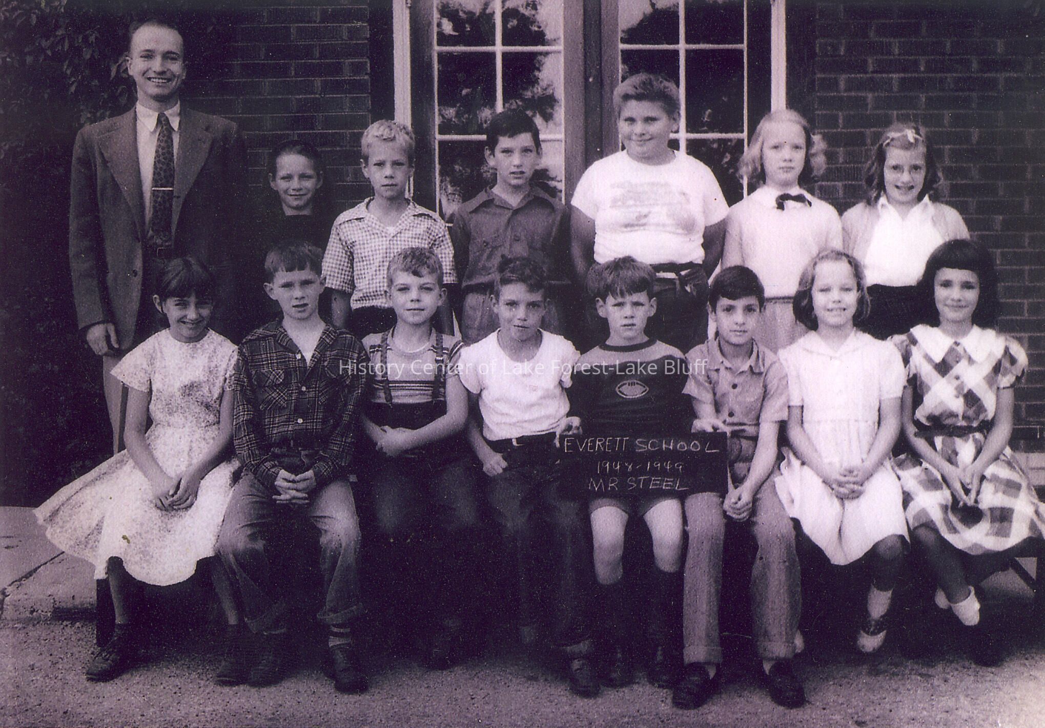 Class photo from Everett School, 1948-1949. Teacher is Mr. Steel.