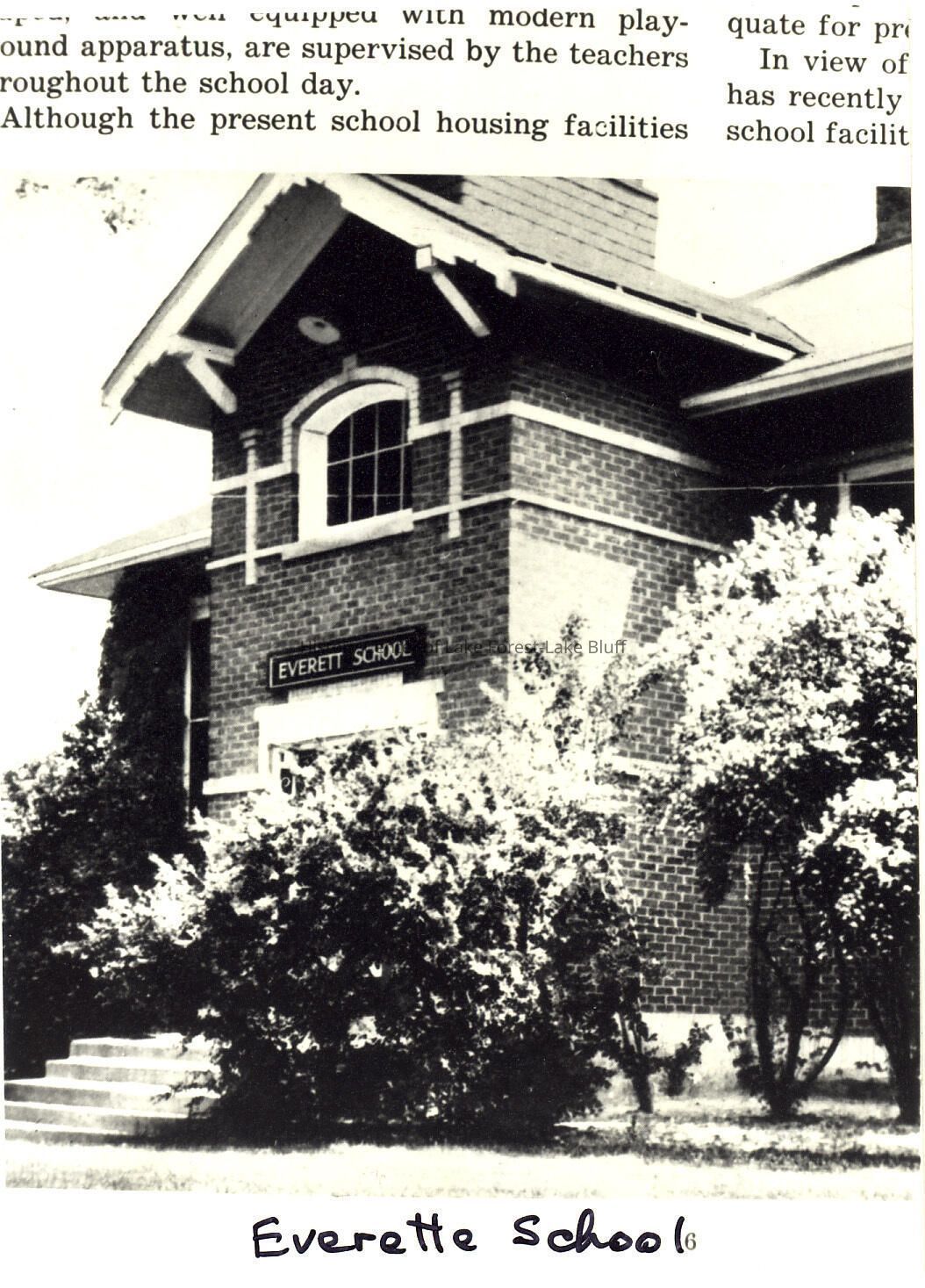 Black and white. Exterior of Everett School.