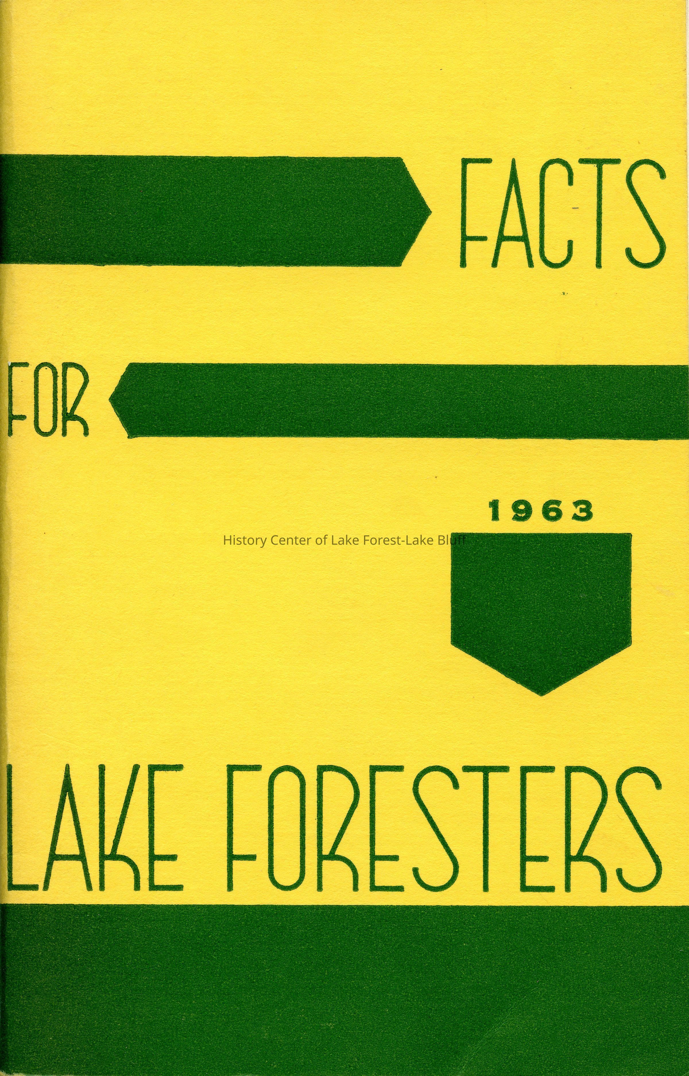 64-page booklet, "Facts for Lake Foresters, 1963" published by the League of Women Voters of Lake Forest. Includes information about city, county, township, state and national government, as well as a list of Lake Forest organizations.Lexicon