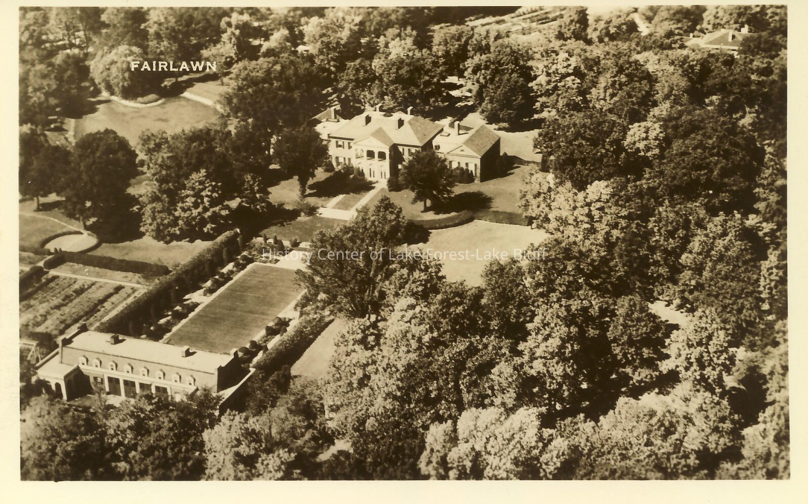 Fairlawn II, 965 East Deerpath owners: Robert and Grace Farwell Winston McGann architects: Delano & Aldrich, built 1923 1010 Spring Lane (Outbuilding) aerial view