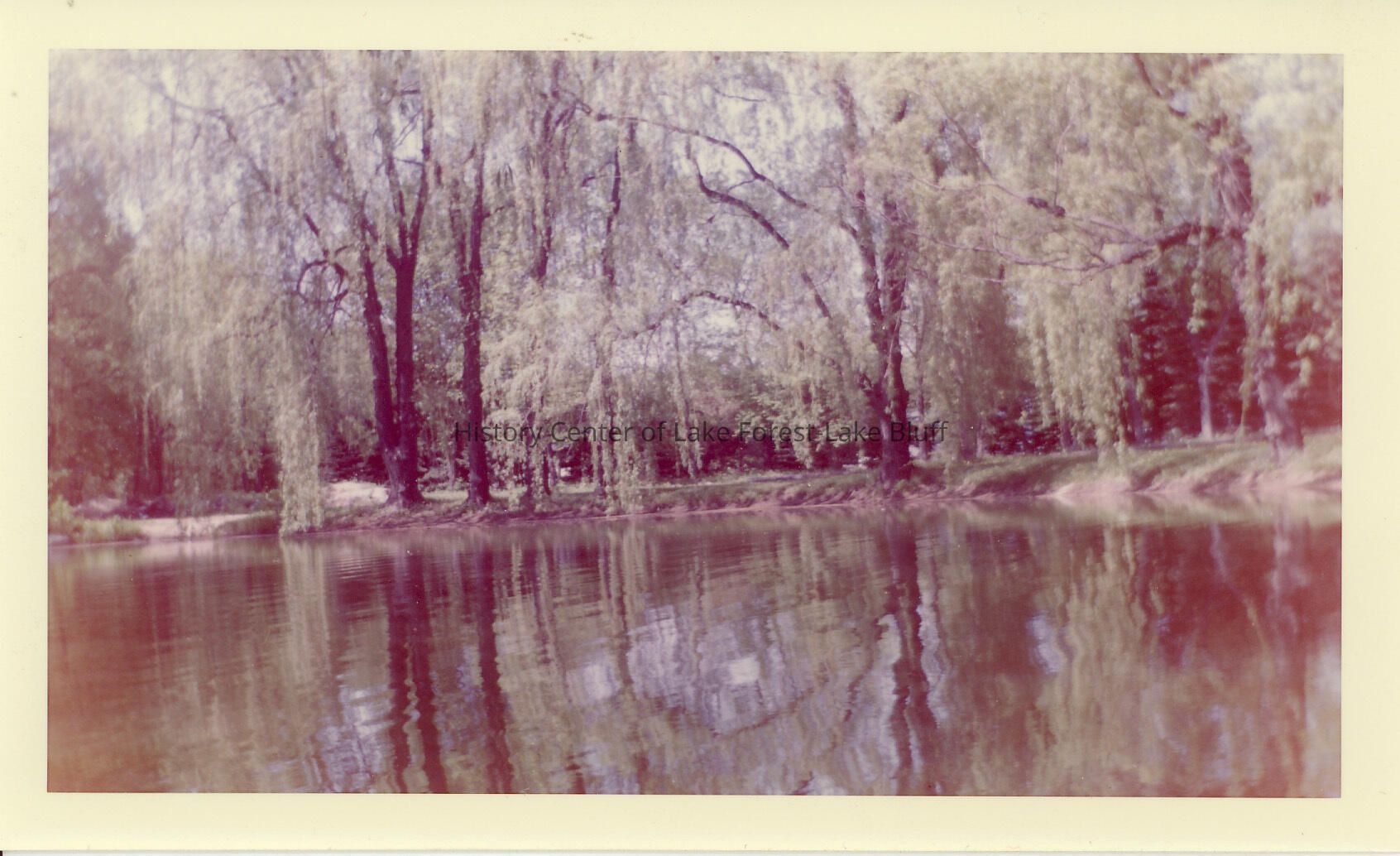 Color photograph of the pond at Fairlawn, May 1959, when owned by the Papas family