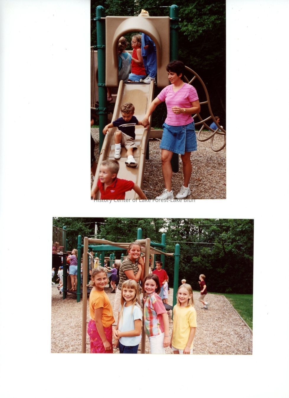 Photos of the Fall 2000 Sheridan School BBQ. First page: Top: "Susie Athenson, Nicholas and Andrew Athenson." Bottom: "Tanya Amidei, Emma Heizer, Catherine Athenson, Bronwyn [Shorty ?], Morgan Strom."