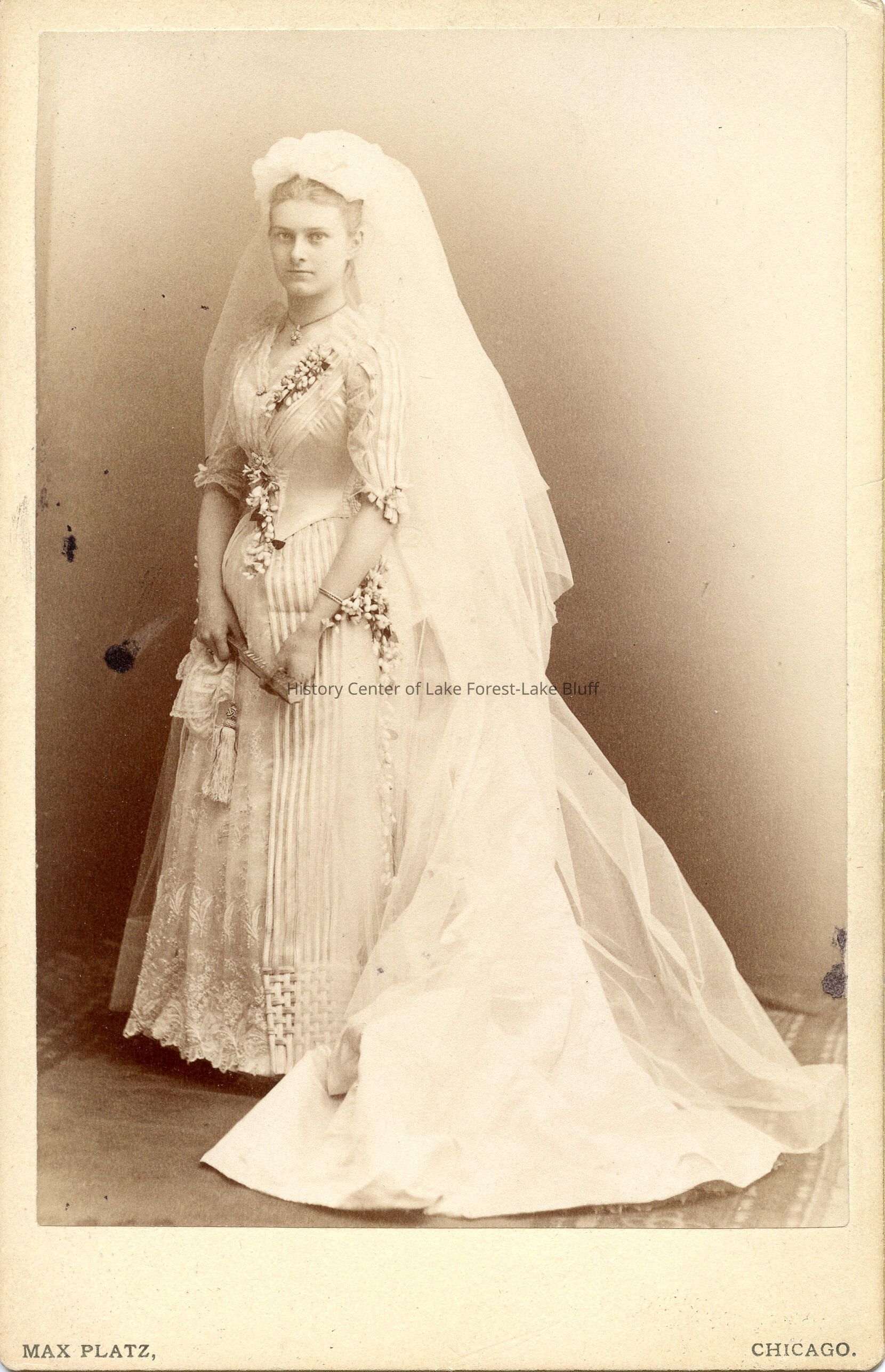Fannie Farwell pictured in her wedding dress on the occasion of her marriage to Henry Nelson Tuttle in 1888. Two copies, a and b