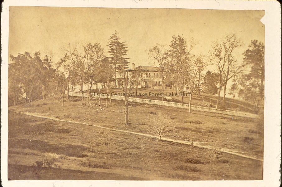 Unidentified farmhouse or estate on top of a hill. From Farwell family photo alblum. Does not look like Lake Forest
