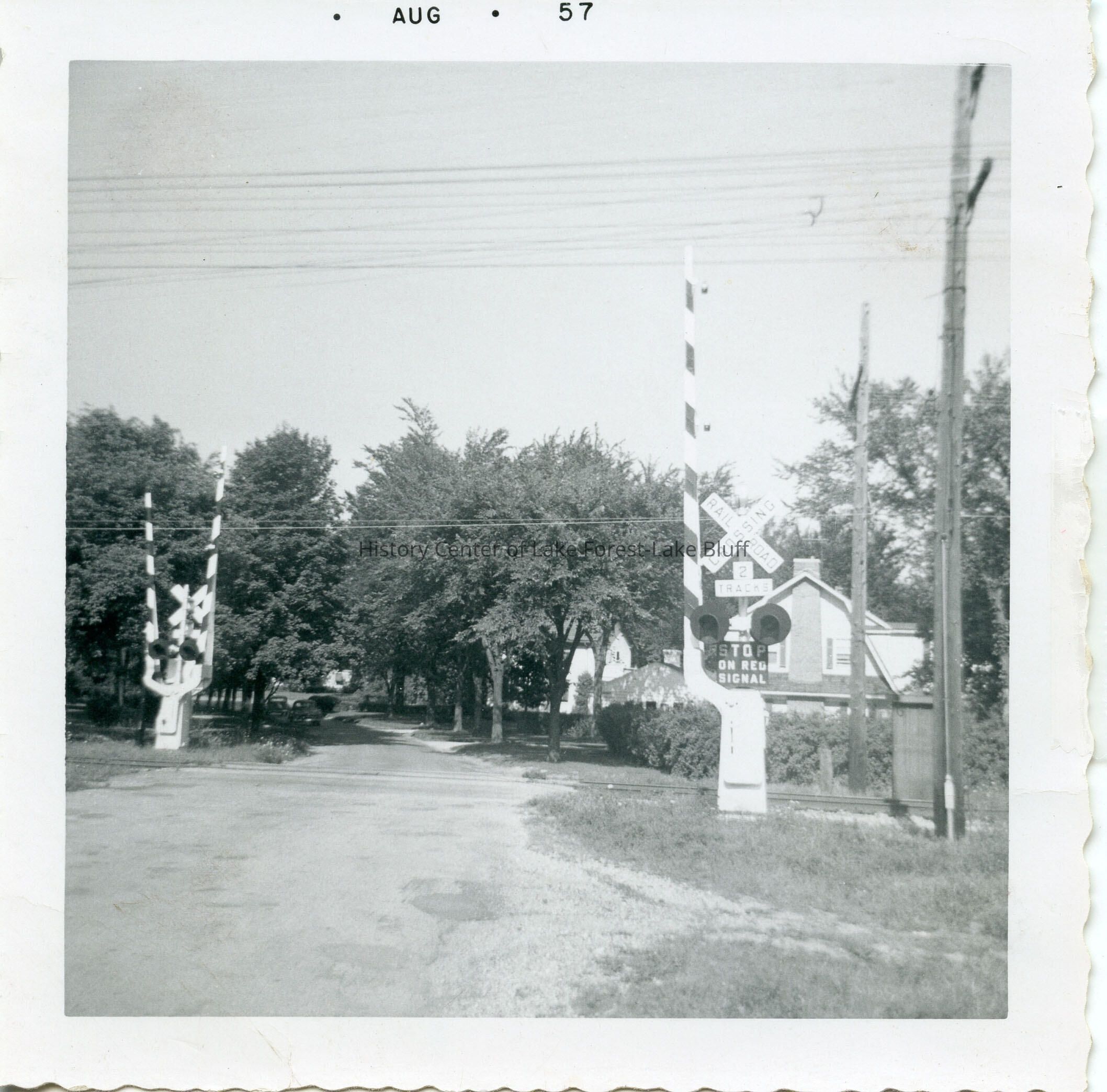 Railroad crossing gates At Ryan Place??? Classified as C&NW based on this guess. Enough room for CNS&M row in background?