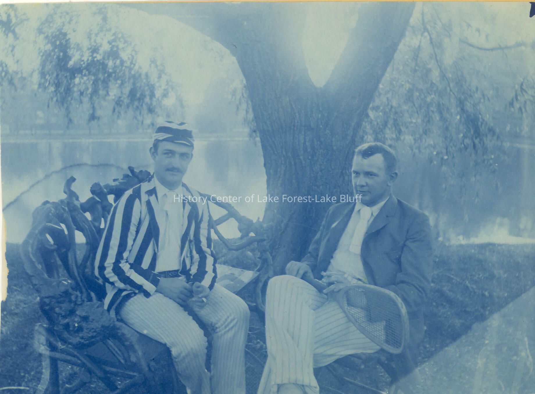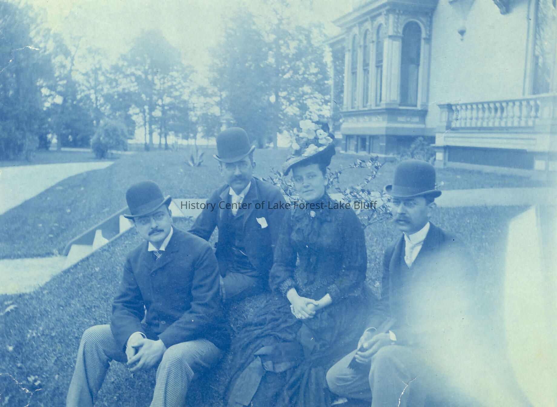 Farwell Family - mostly 1880's - unidentified photo on front is of two men sitting by the pond photo on back is of three men and a woman