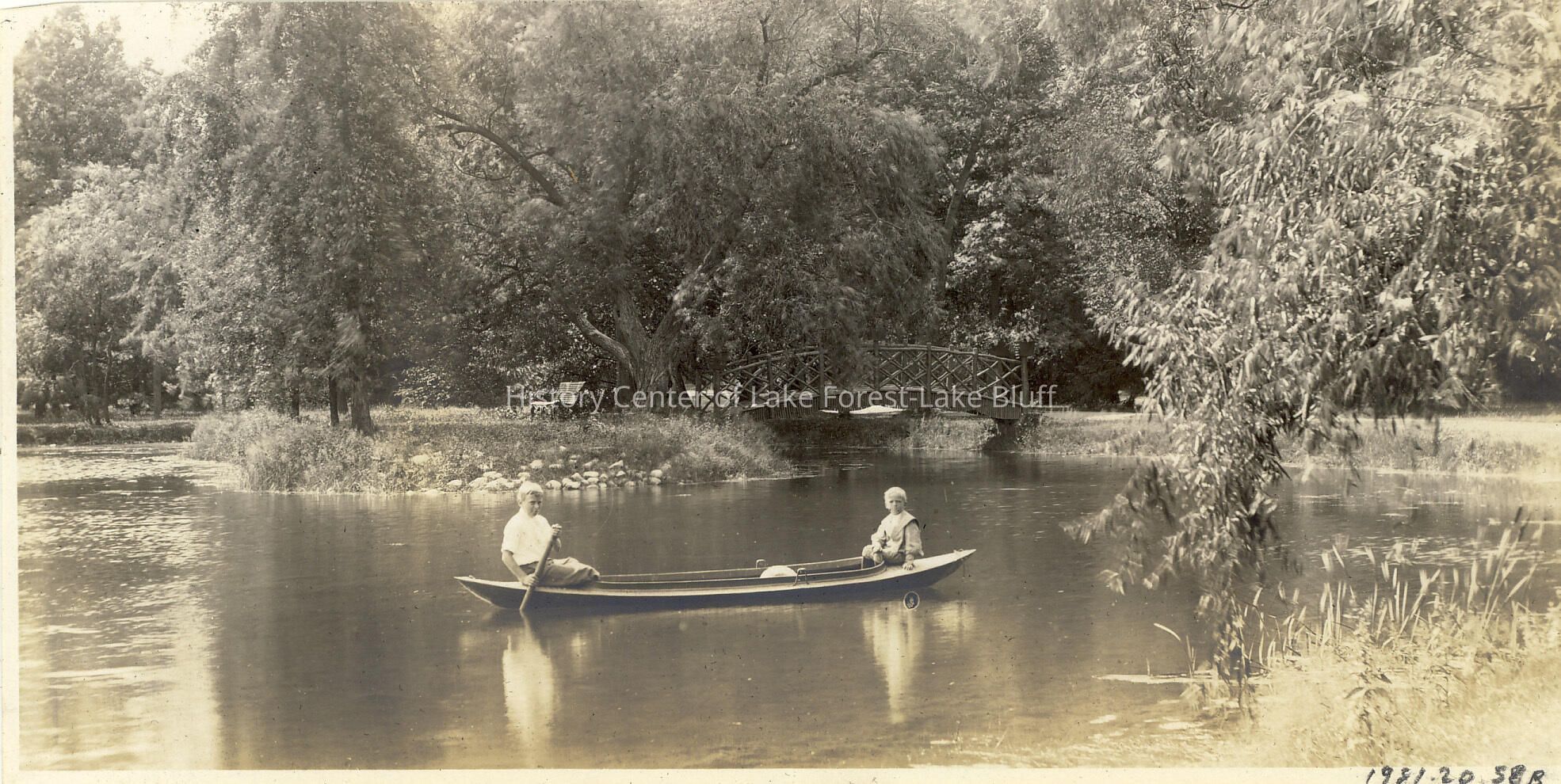 Farwell Pond at Fairlawn Lake Forest two children in a canoe