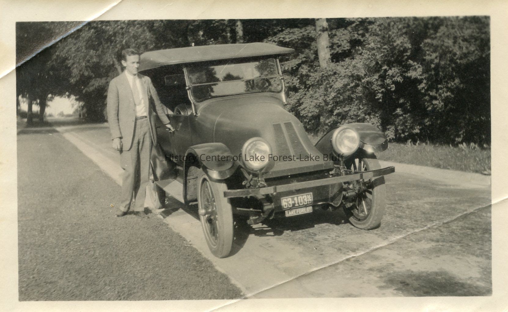 A picture of Farwell Winston with his car. Model written on back of picture, indecipherable.