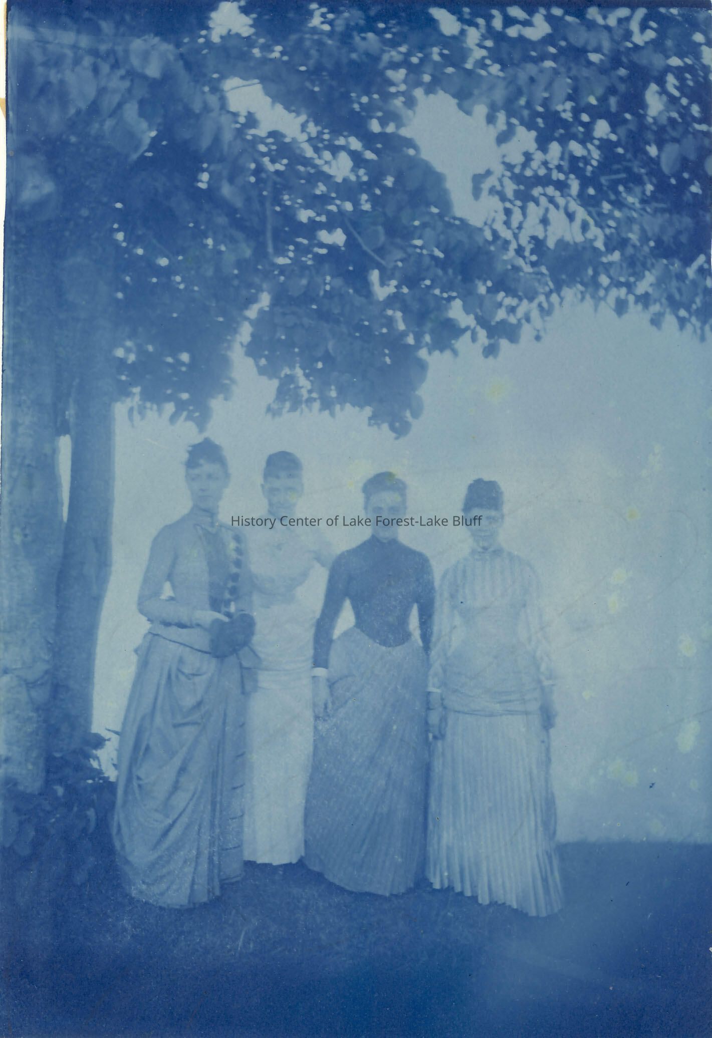 Farwell Family - mostly 1880's photo of four unidentified women with a tree on the left and pond in the background