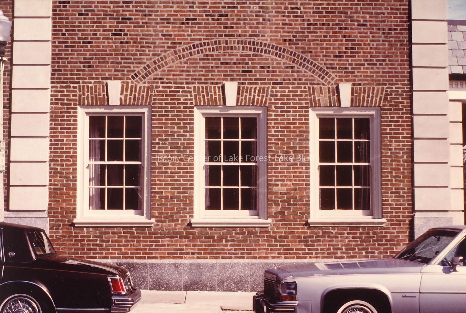 partial brick facade of bank with three windows west side (Bank Lane) 1970s-80s
