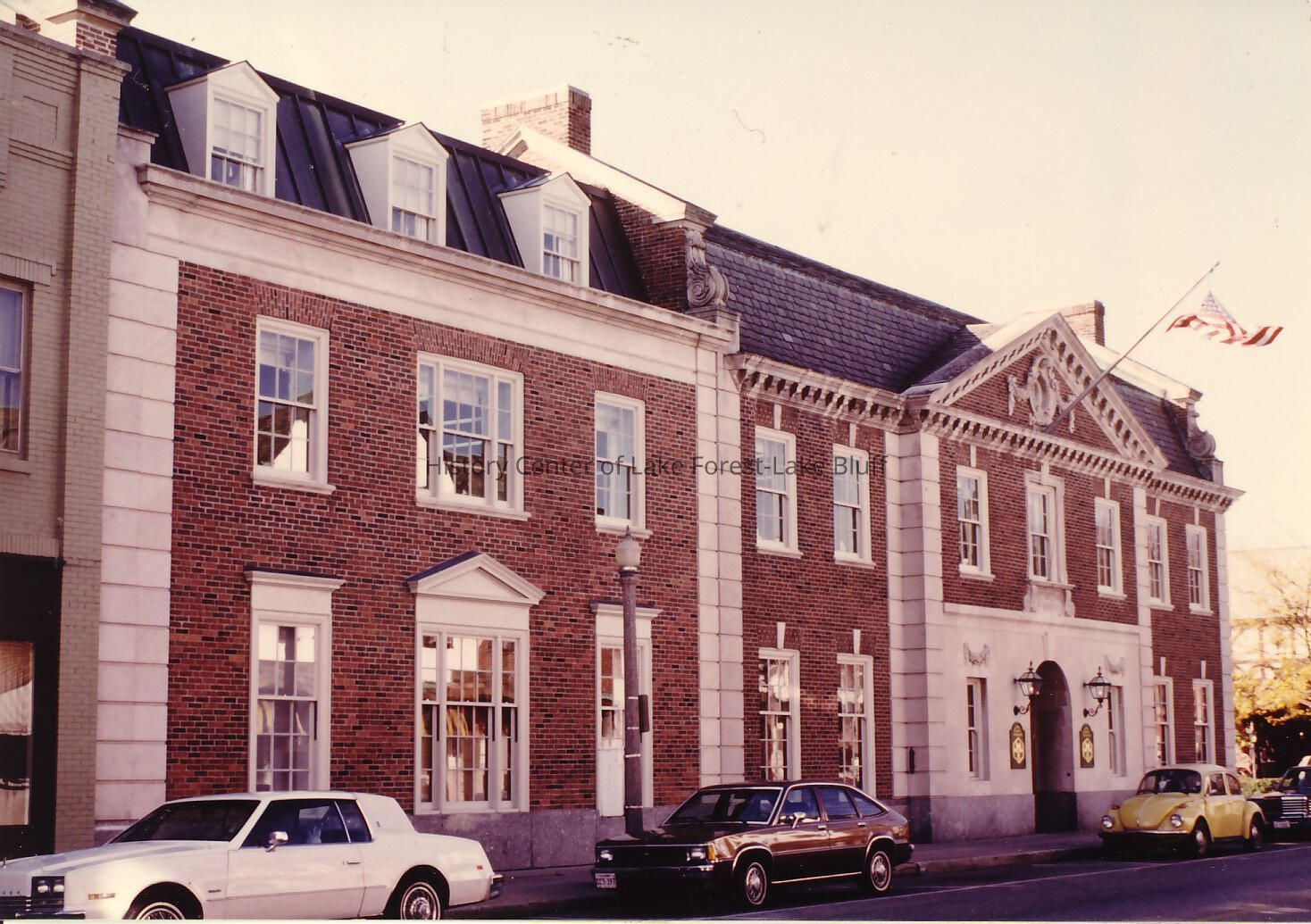 north facade of bank with three dormers 1970s-80s
