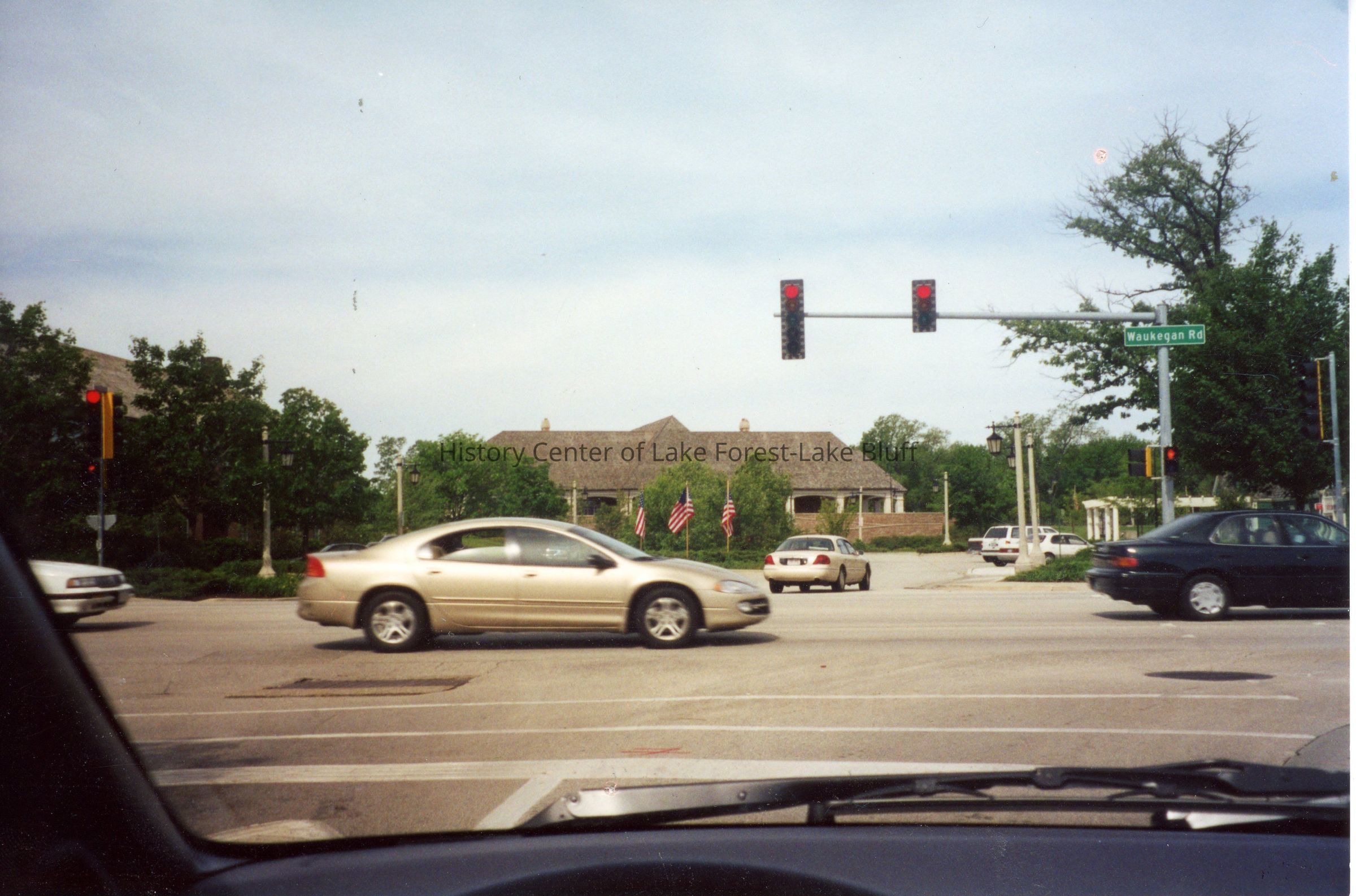 Cars move through an intersection on Waukegan Road.