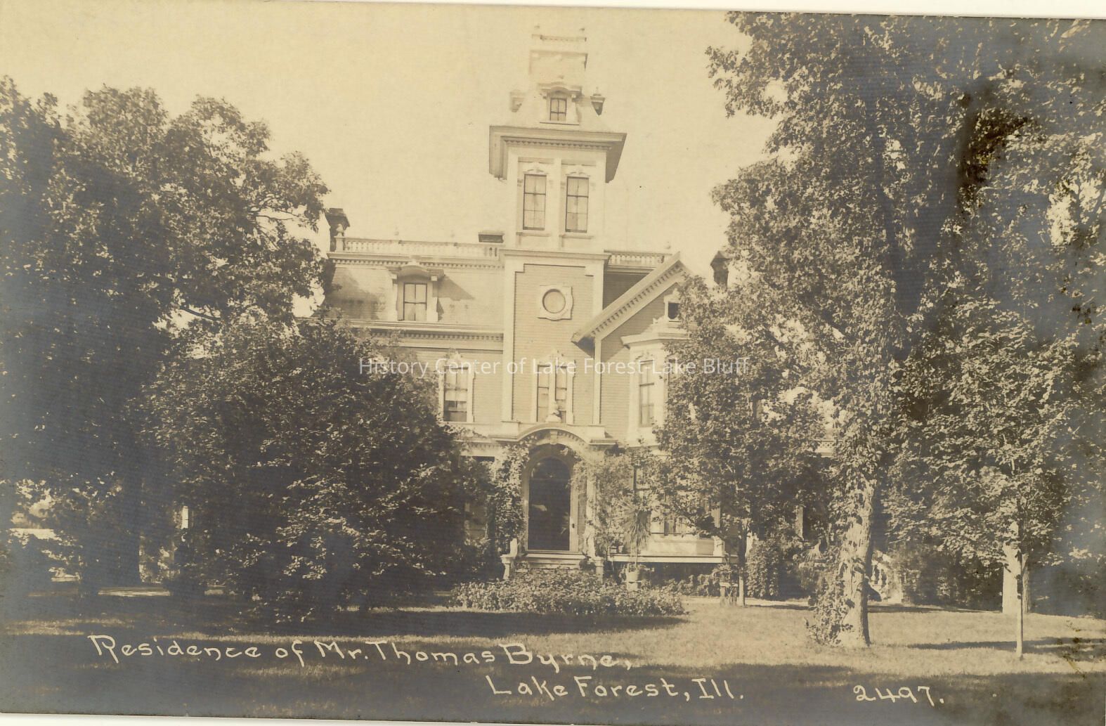 Original owner David J. Lake, was the Secretary of Lake Forest Association when it was formed in 1856. Lake was a trustee of the original Lake Forest Association and the third mayor of Lake Forest. Forest Lawn was built in 1870. Rufus Rose was the architect. The house was extensively remodeled in 1927. In 1976 the interior was again remodeled. The coachhouse at 642 E. Deerpath was converted to a residence. The residence was later owned by the Thomas Bryne Family. Later on the Muzzy family purchased the property and gave the statue of a deer found on the estate to the city, where it was placed in Triangle Park.