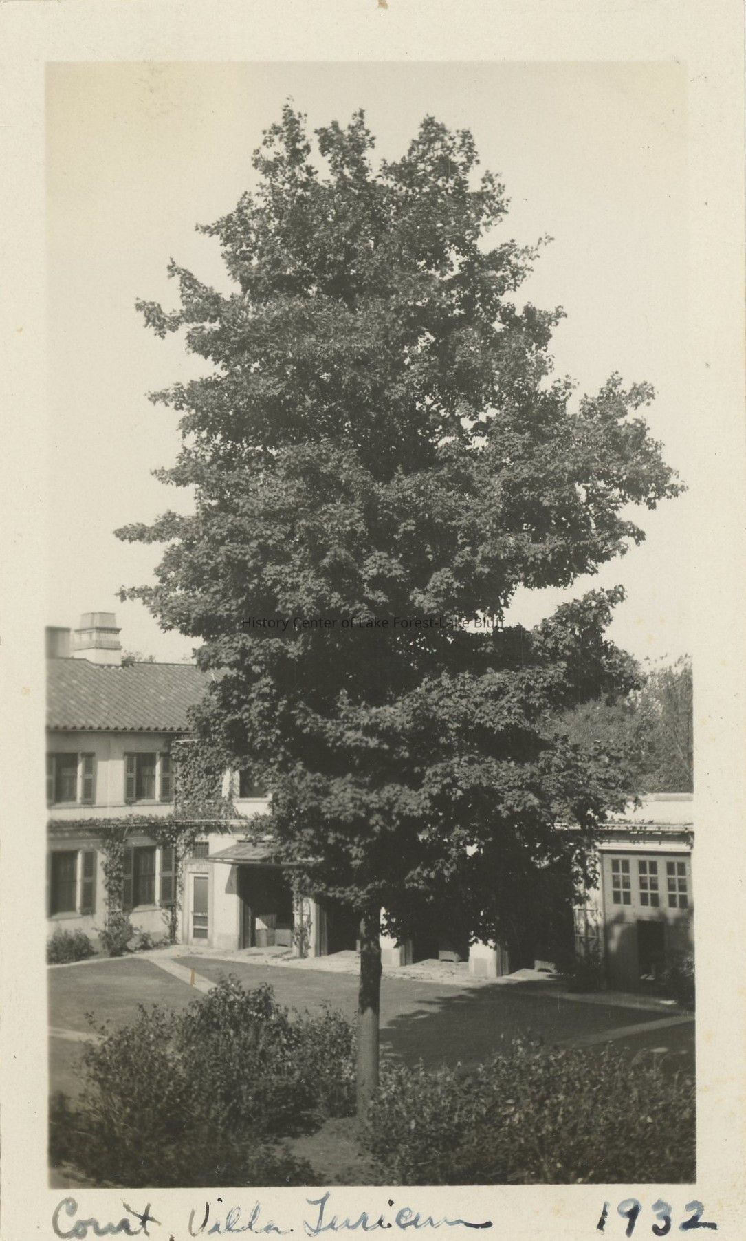 Garage block or staff "court" at Villa Turicum, the Harold F. and Edith Rockefeller McCormick estate, where John "Jack" and Edythe Dunford, estate caretakers resided. 1932.Photograph Details