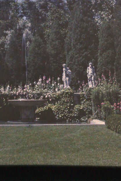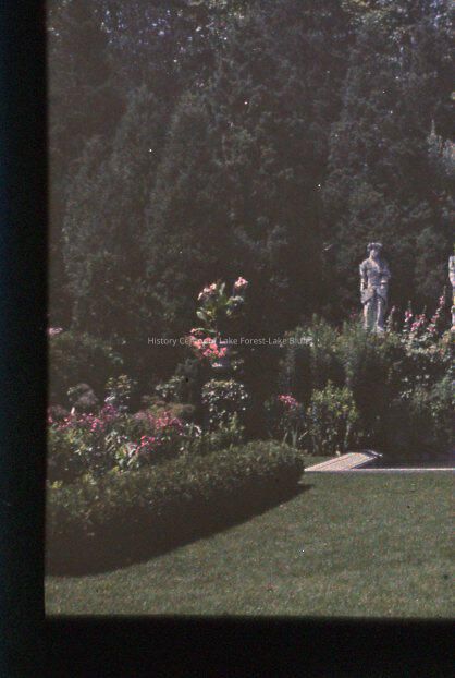 Same as 1983.9.17 and 1983.9.18 except more lawn in front of pond and statues. Havenwood II garden 1075 East Ringwood Road Lake Forest owners: Edward Larned Ryerson Sr. and Mary Pringle Mitchell Ryerson; Franciscan Order of Monks Howard Van Doren Shaw landscape architects: Jens Jensen; Rose Standish Nichols 1912-1914 N - razed 1979 Gatehouse extant at 955 Ringwood