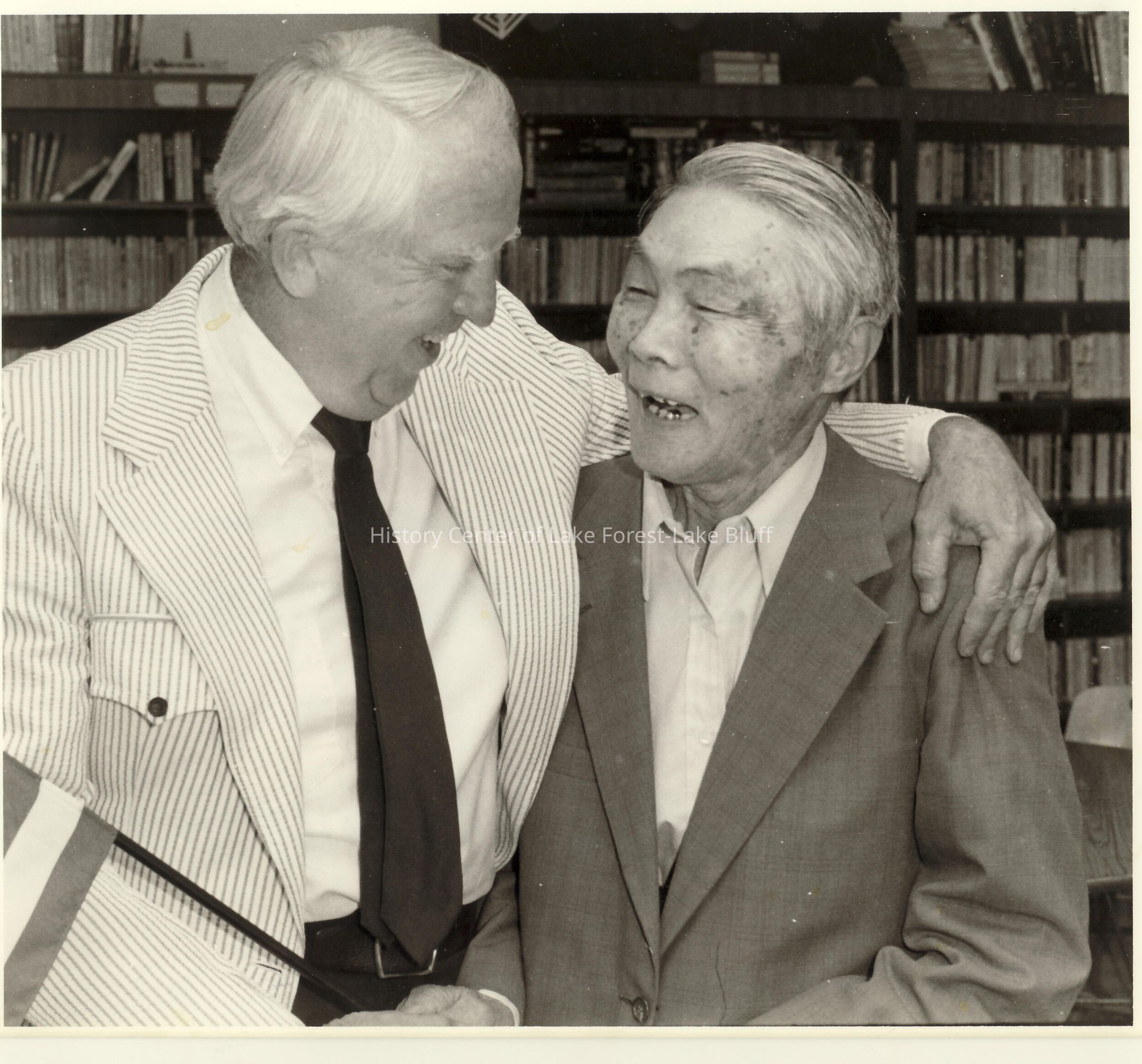 Gene Mullin with his arm around Gin Yu Hsu Tang, August 10, 1988 photo is reversed Mr. Mullin taught at Lake Forest High School