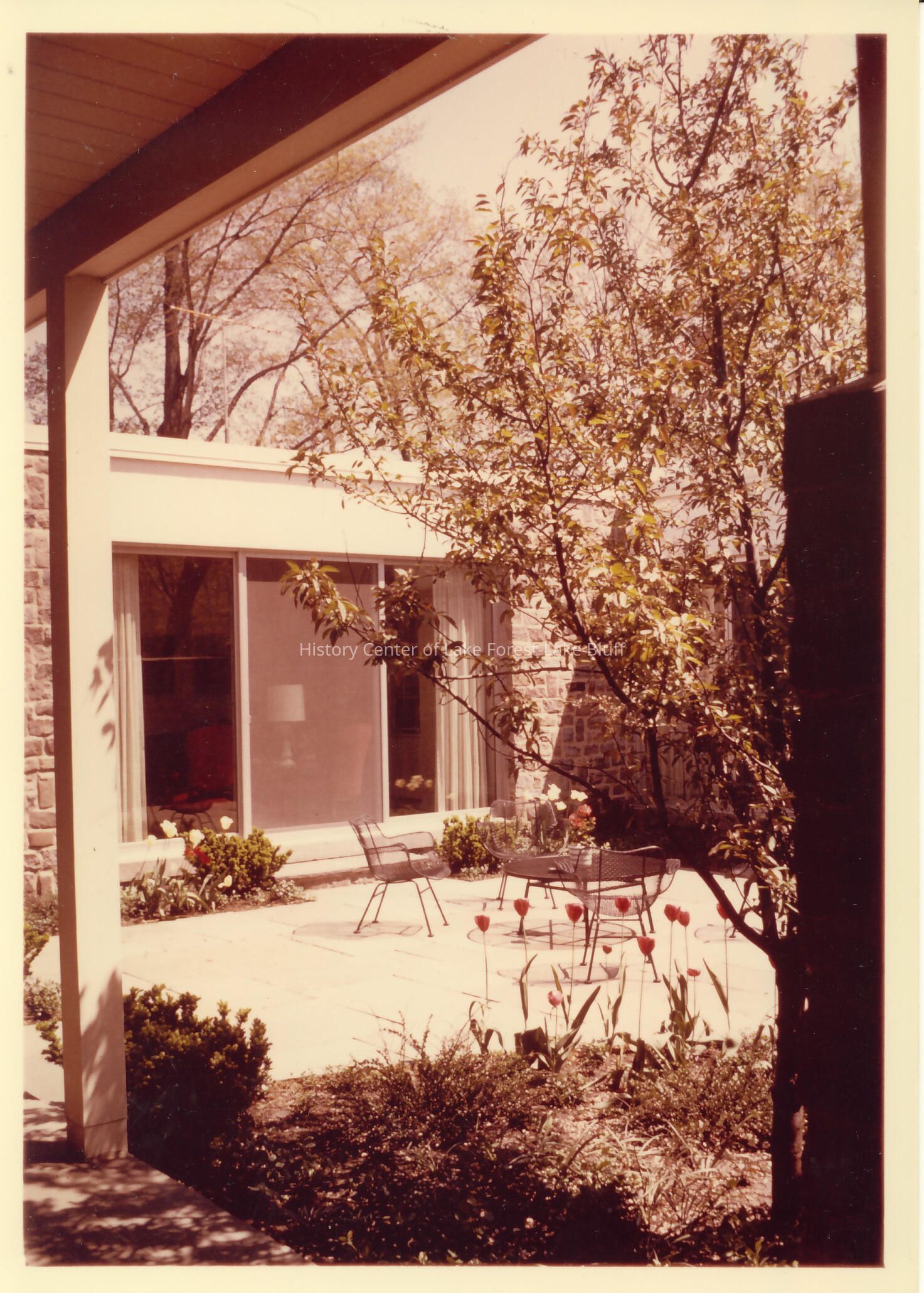 Close up exterior view of Walter Frazier home built for Gilbert and Catherine Curren in 1960. Located in Lake Bluff, Illinois.