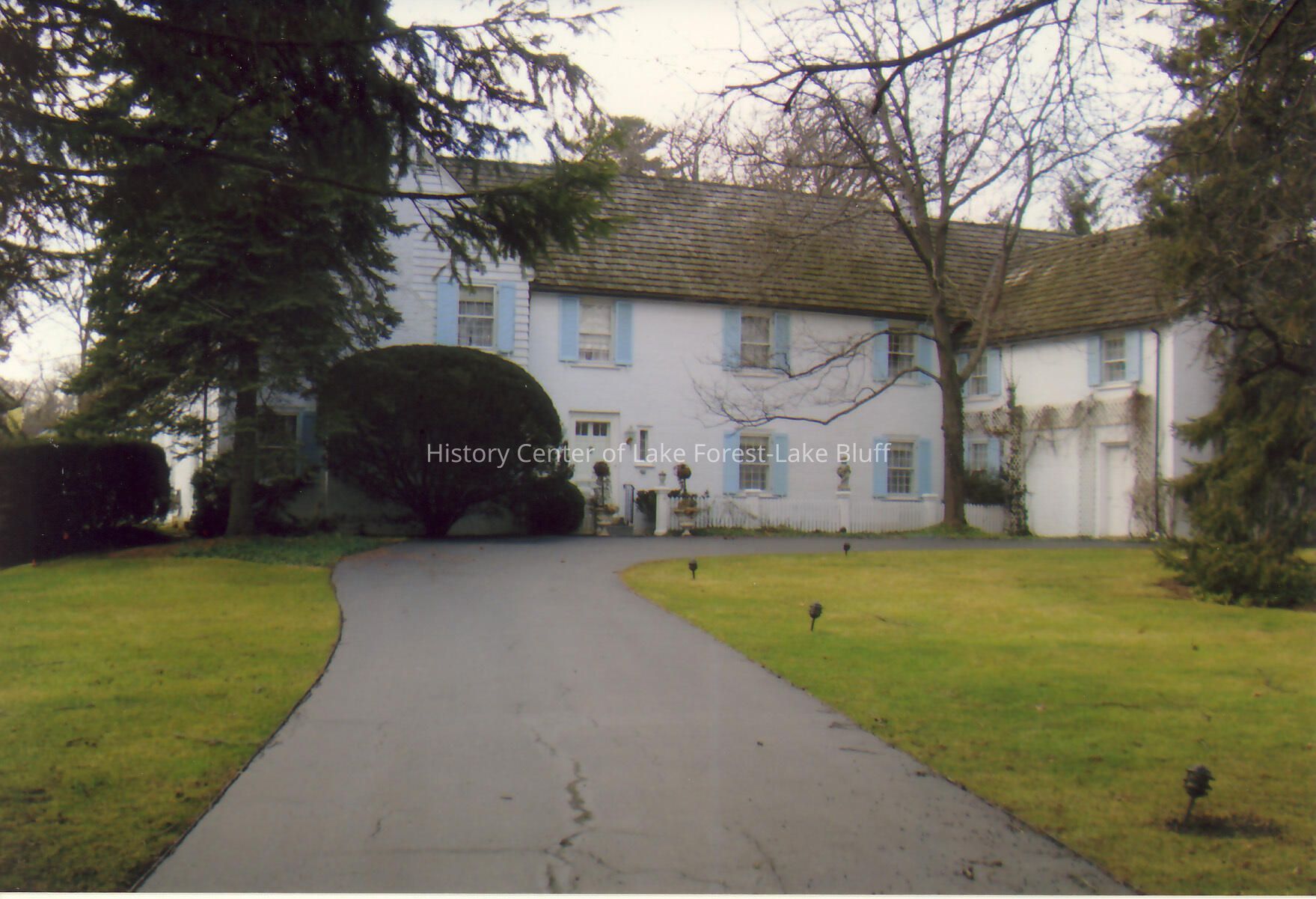 Exterior view from drive way of Walter Frazier home built for Gilbert Porter III in 1926. Located at 650 Lake Road in Lake Forest, Illinois.