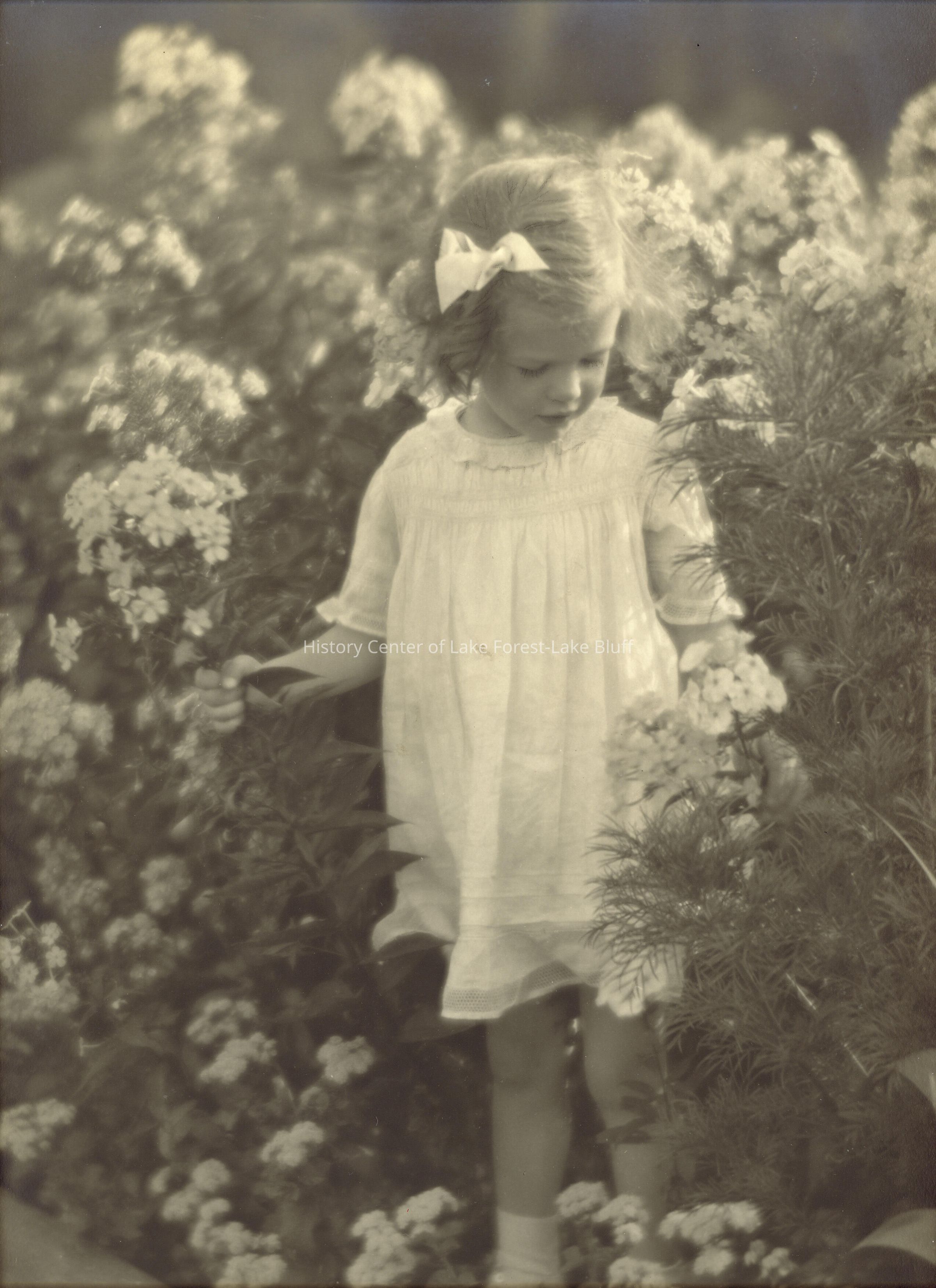 Girl in flower bed with bow in hair see also 2002.22.168 and 169
