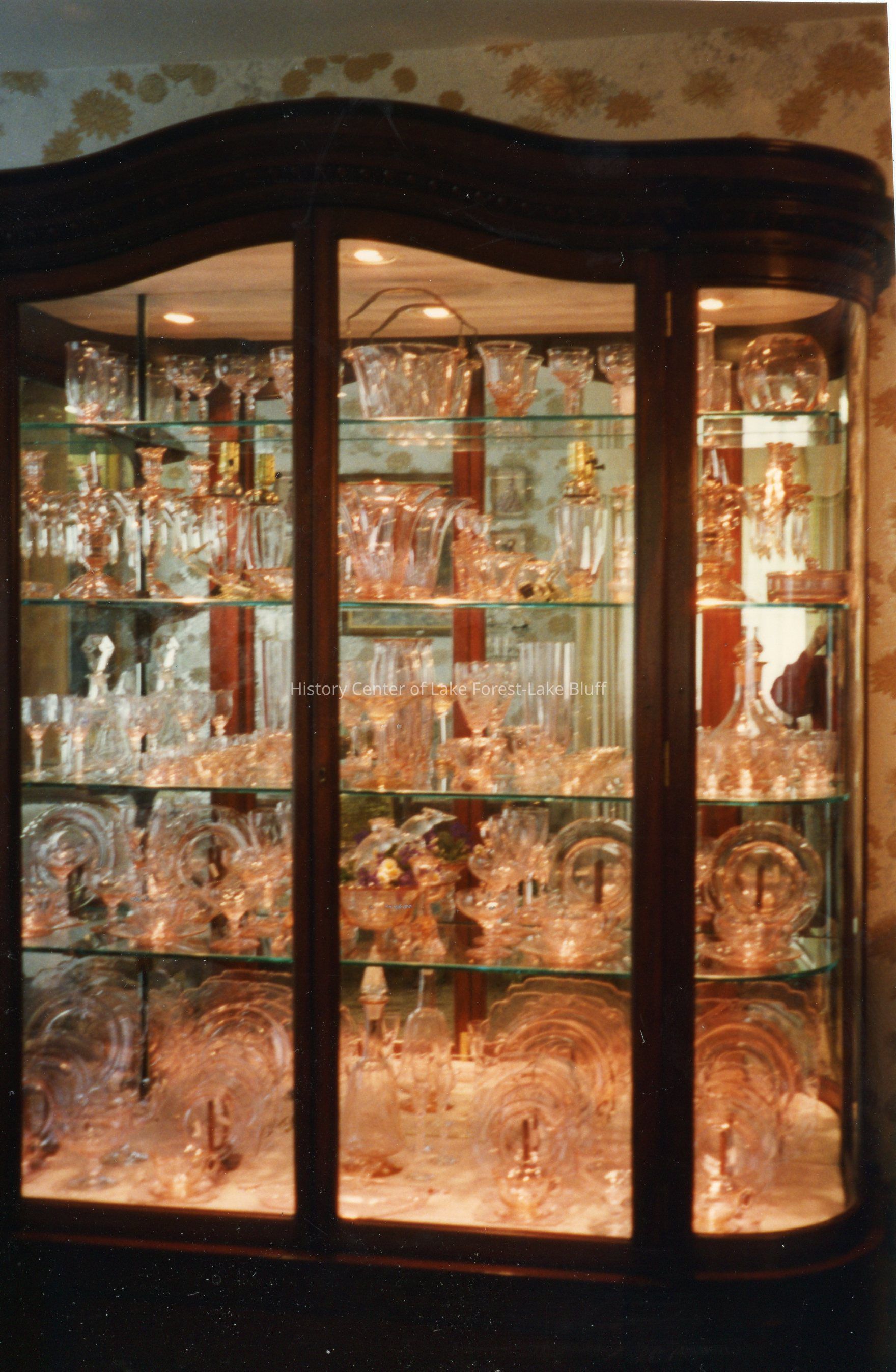 Image of a cabinet with glassware inside, possibly at the Heisey Glass Museum.Photograph Details