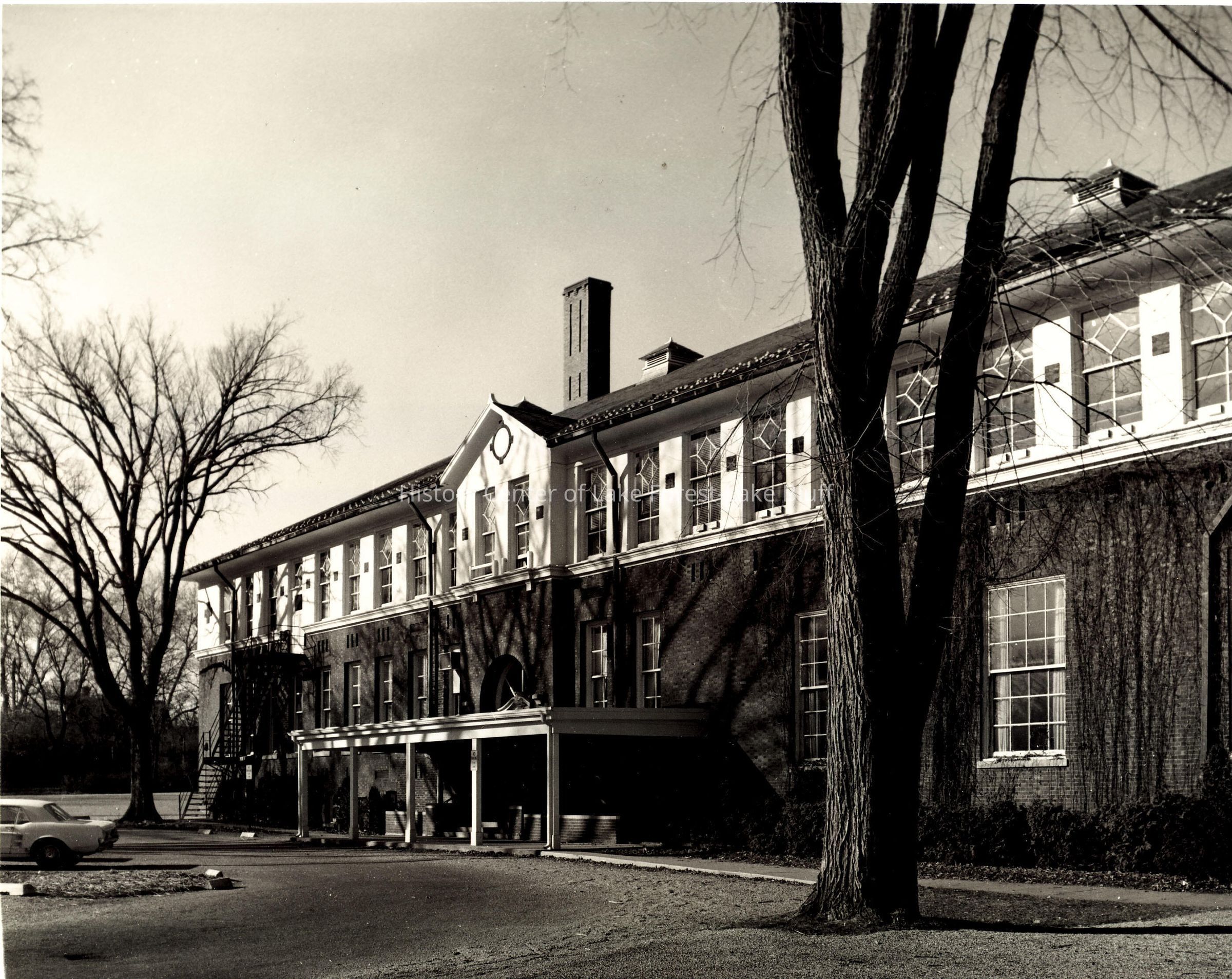 Black and white re-print 8 x 10 photograph of Gorton School. Originally called the Central School, in 1905 it was renamed the Gorton School in honor of the nineteenth mayor of Lake Forest, Edward F. Gorton (1895-1902). In 1972 Gorton School was converted to the Gorton Community Center.