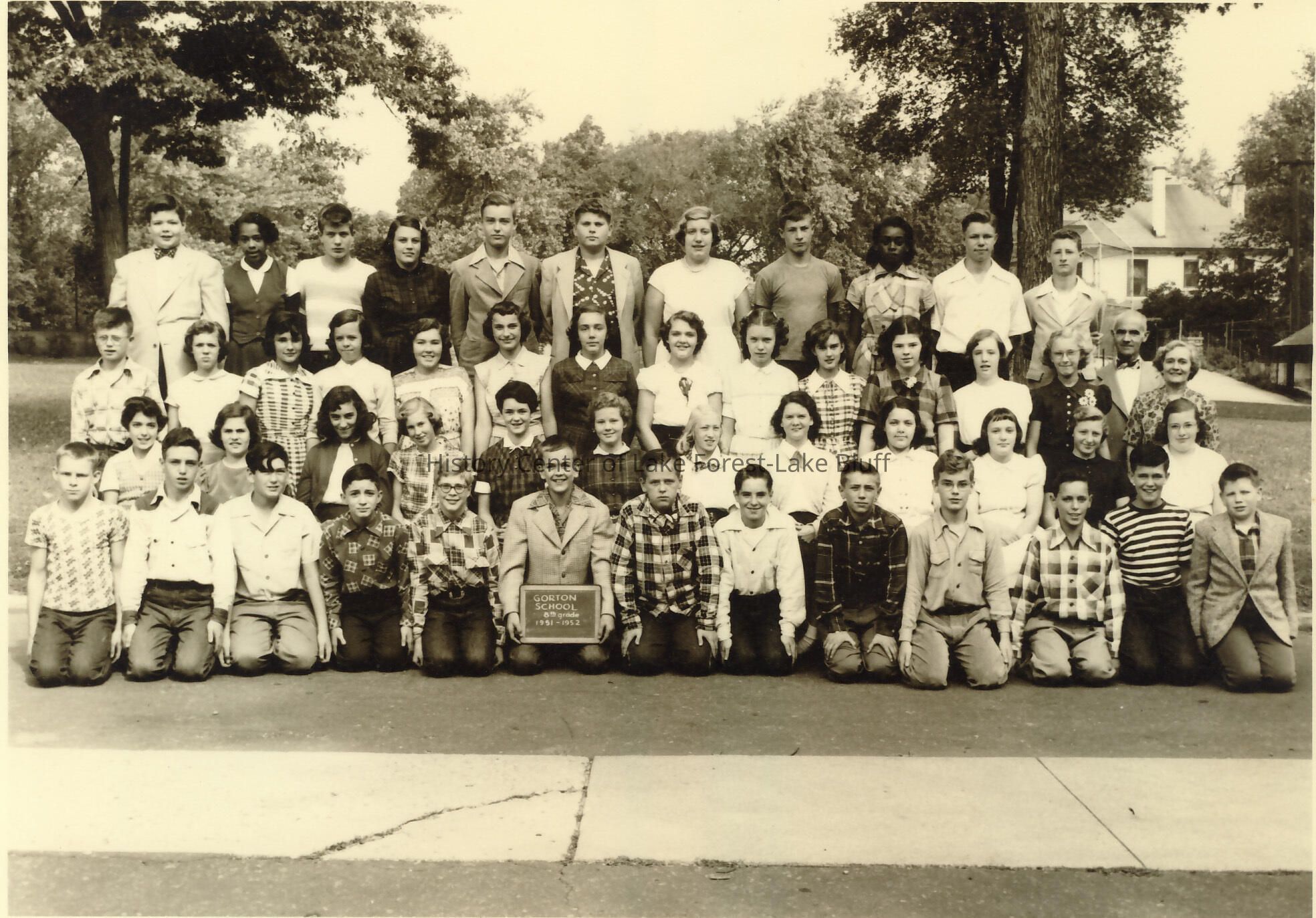 Gorton School Class of 1952, Combined 8th grades. Miss Ethel Haines and Mr. Robert Vandervoort, teachers.