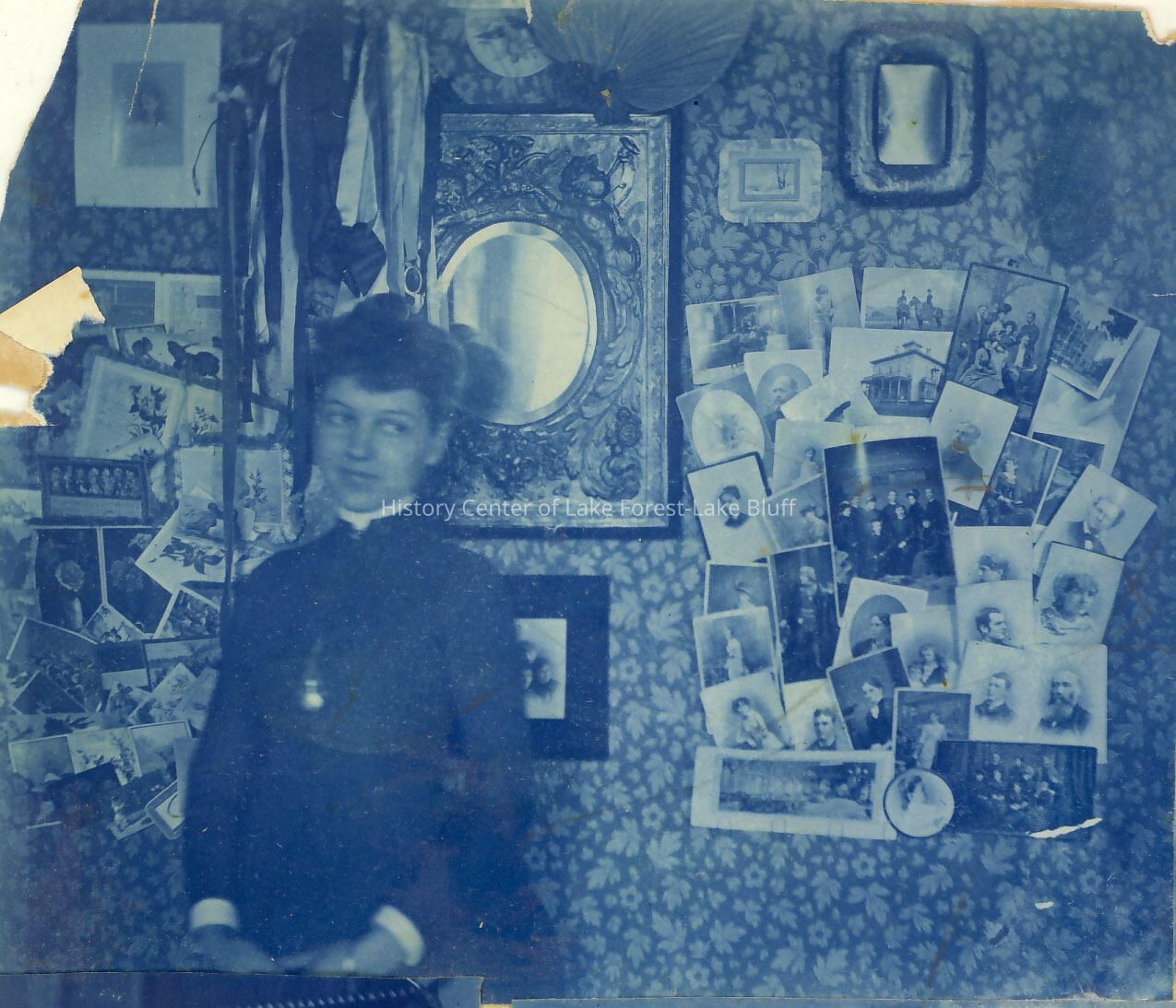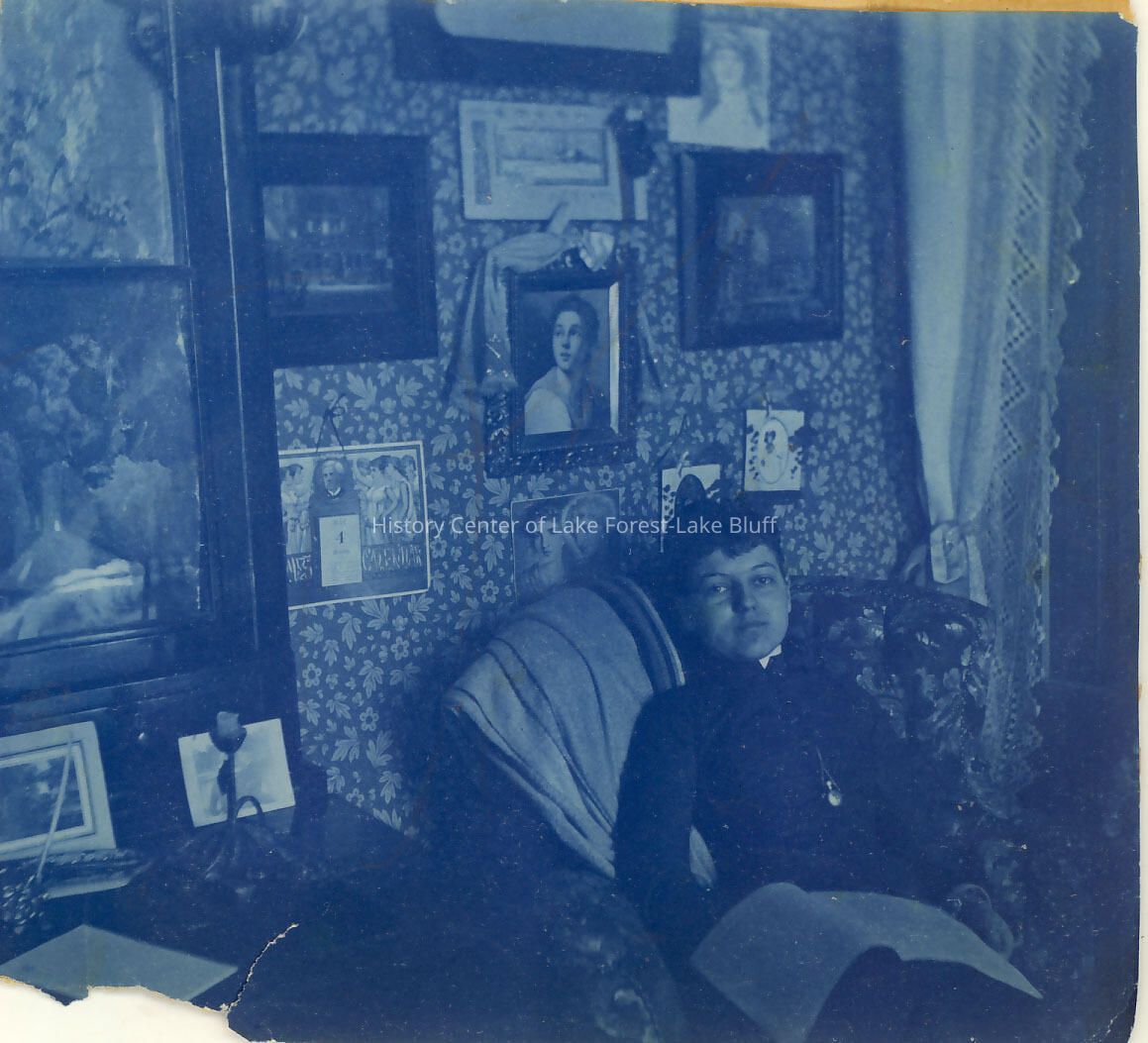 Farwell Family - mostly 1880's page of photos, 3 on the front and 6 on the back Grace Farwell and cousin Fanny Farwell, printed on blue processing paper