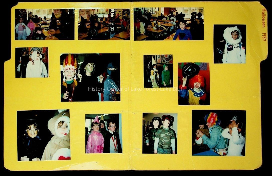 Photos of students in costumes from Halloween at Sheridan School, 1987.