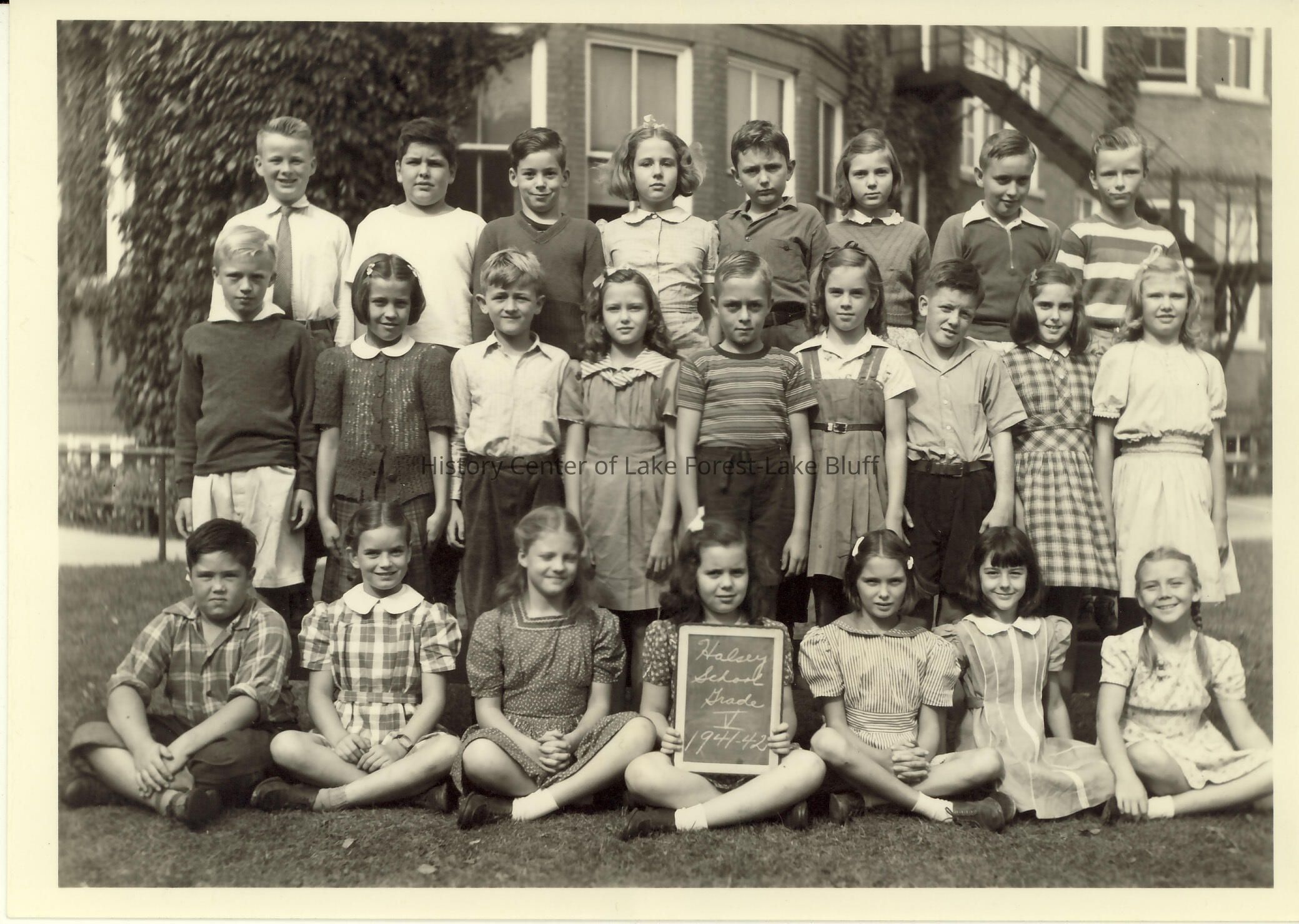 Black and white school class photo. Halsey School grade 4 1941-1942